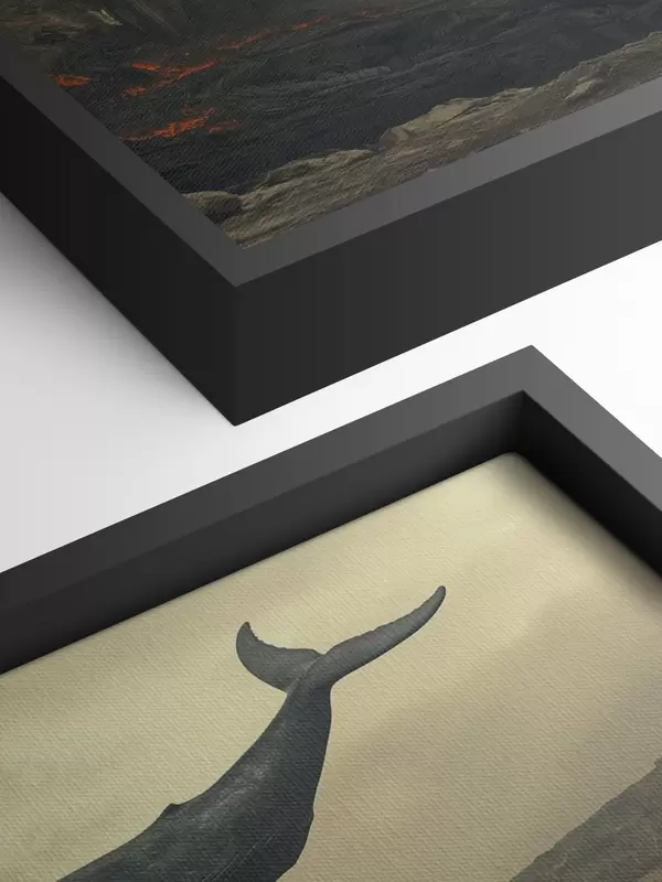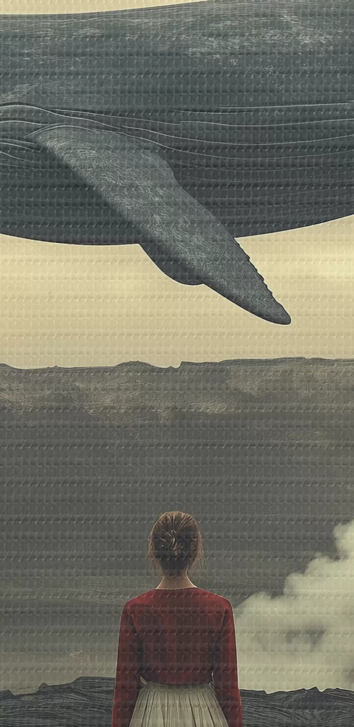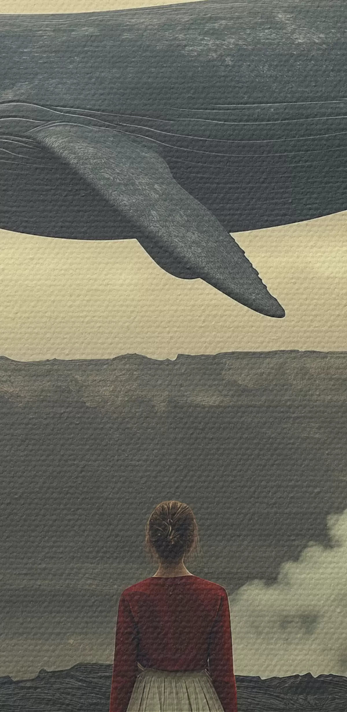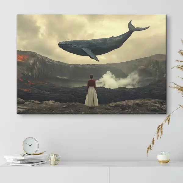 Quadri Ragazza sulla lava con una grande balena volante nel cielo Nr s40986