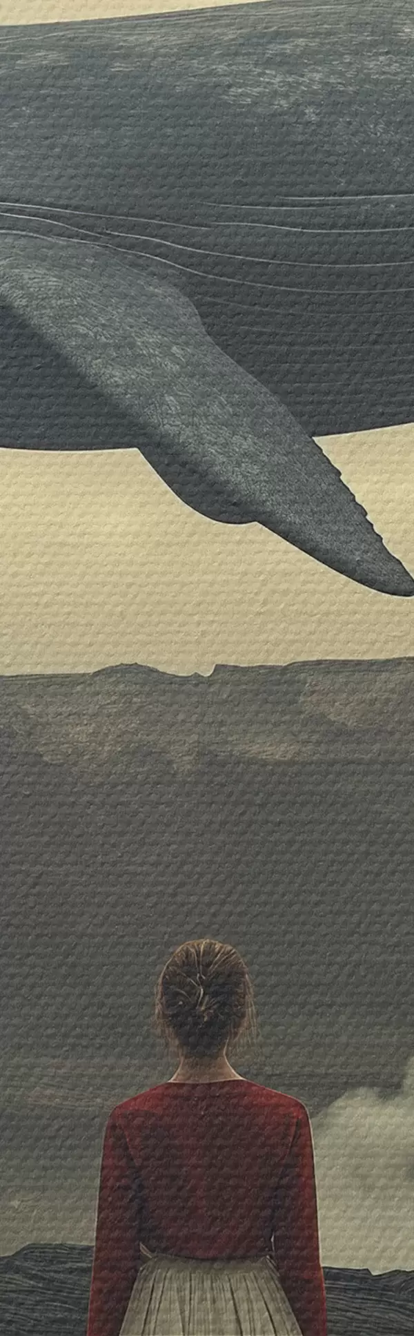 carta da parati Ragazza sulla lava con una grande balena volante nel cielo nr. s40986