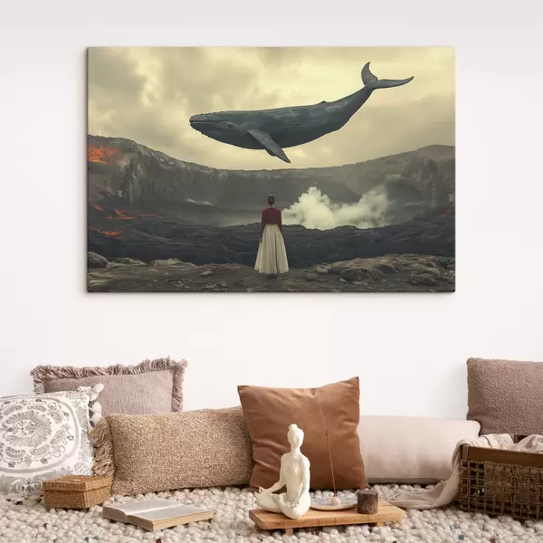 Quadri Ragazza sulla lava con una grande balena volante nel cielo Nr s40986