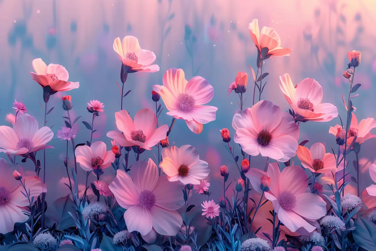 carta da parati Fiori di campo da favola nelle tonalità del rosa e dell'azzurro nr. s40990
