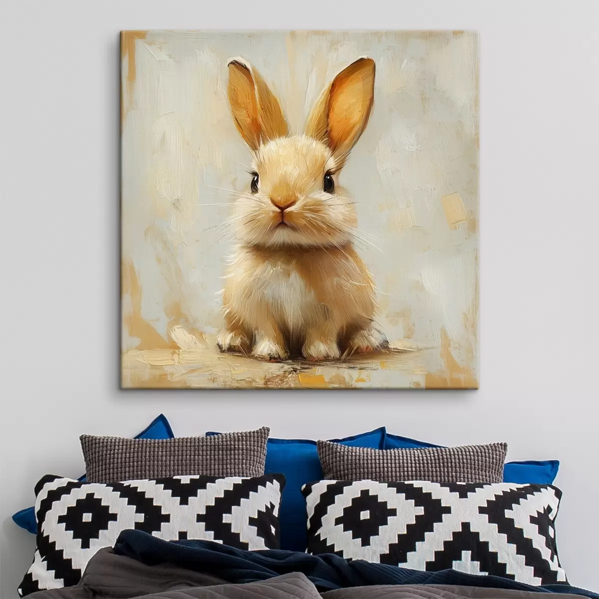 Quadri Coniglietto beige su sfondo chiaro con pennellate decise Nr s41000