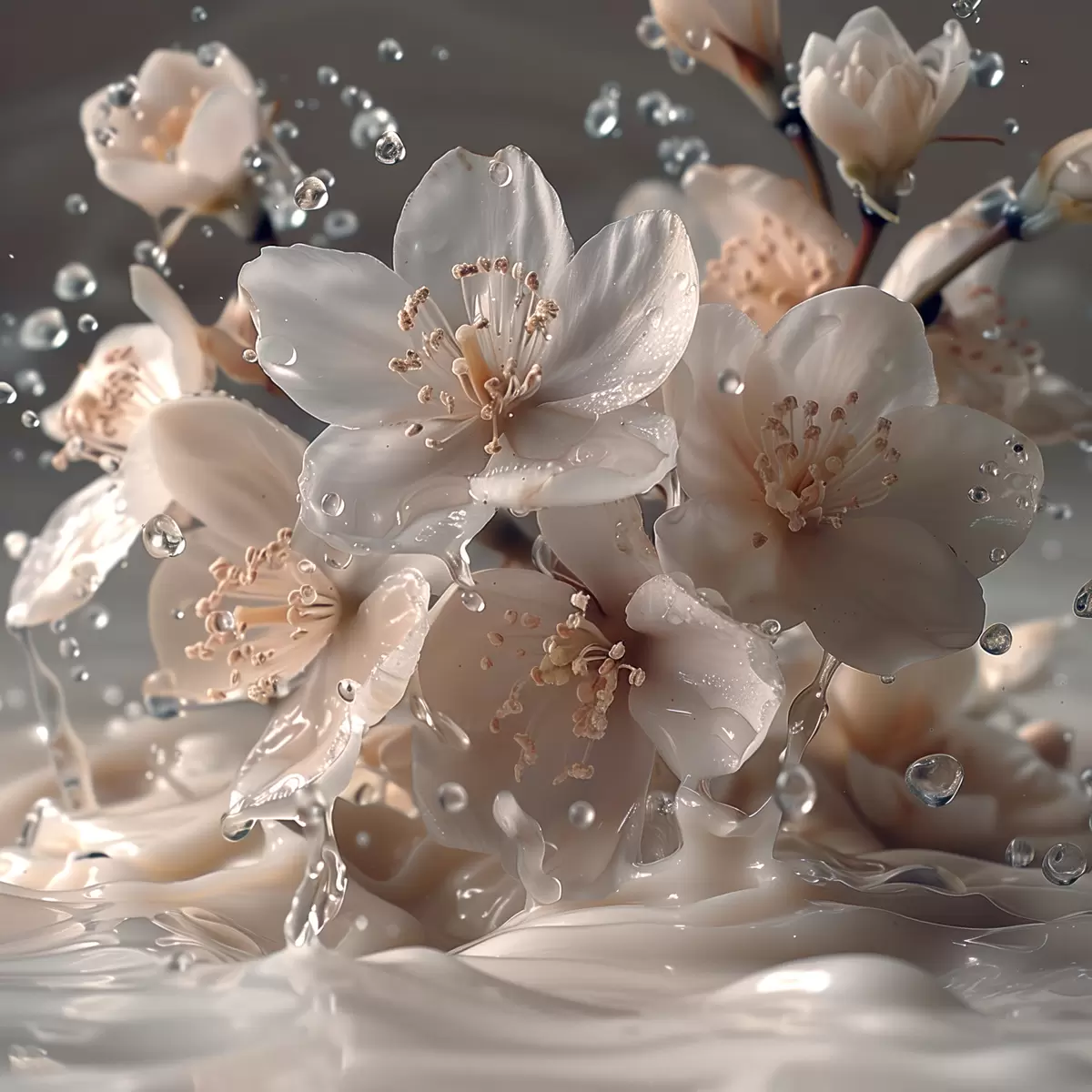 carta da parati Fiori di gelsomino in un vortice di goccioline nr. s41003