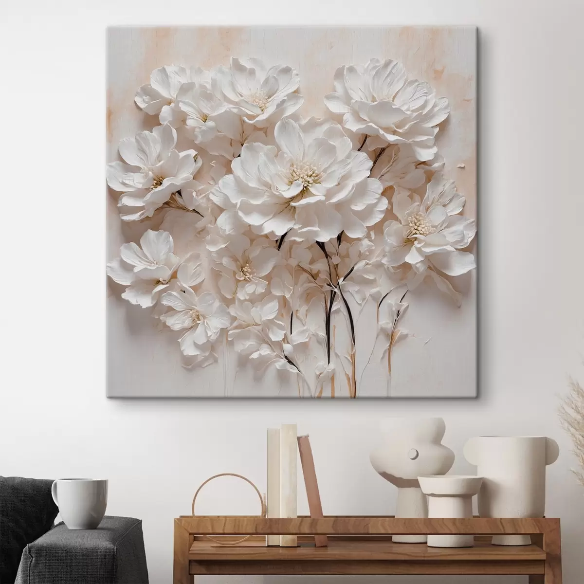 Quadri Fiori bianchi su sfondo bianco-arancio Nr s41042