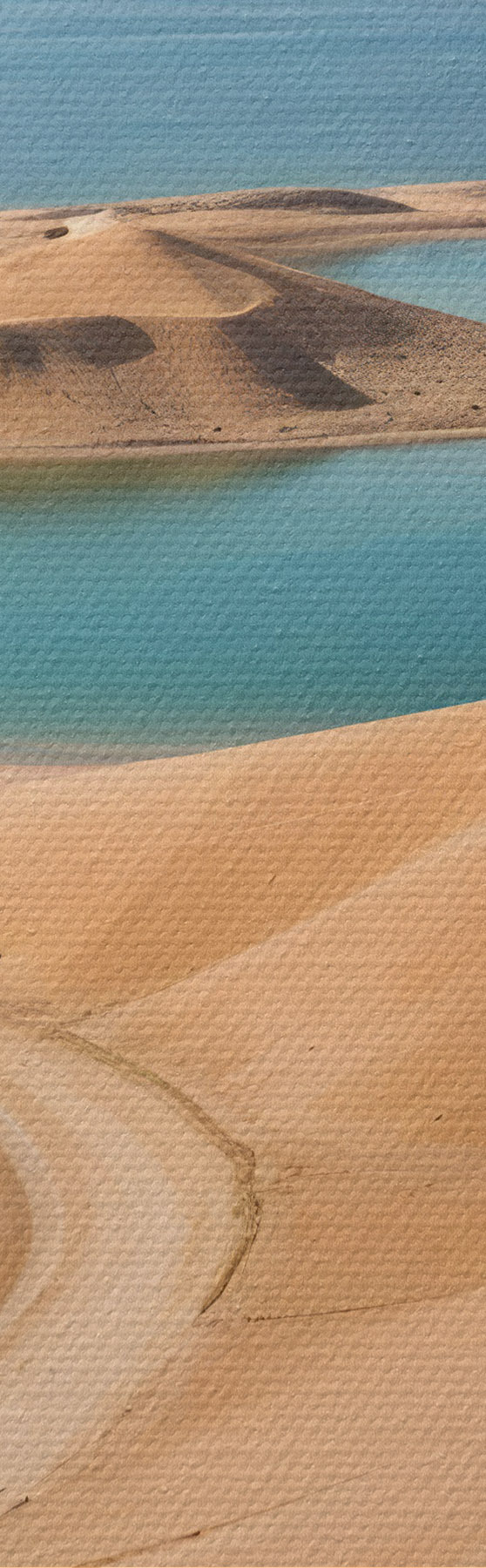 carta da parati Un vasto paesaggio desertico con dune di sabbia e laghi turchesi, circondato da aspre montagne nr. s41087