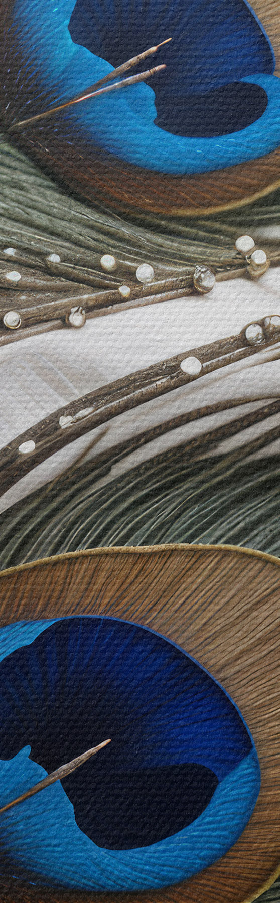 Quadri Vibranti piume di pavone con motivi intricati e suggestivi disegni blu Nr s41103