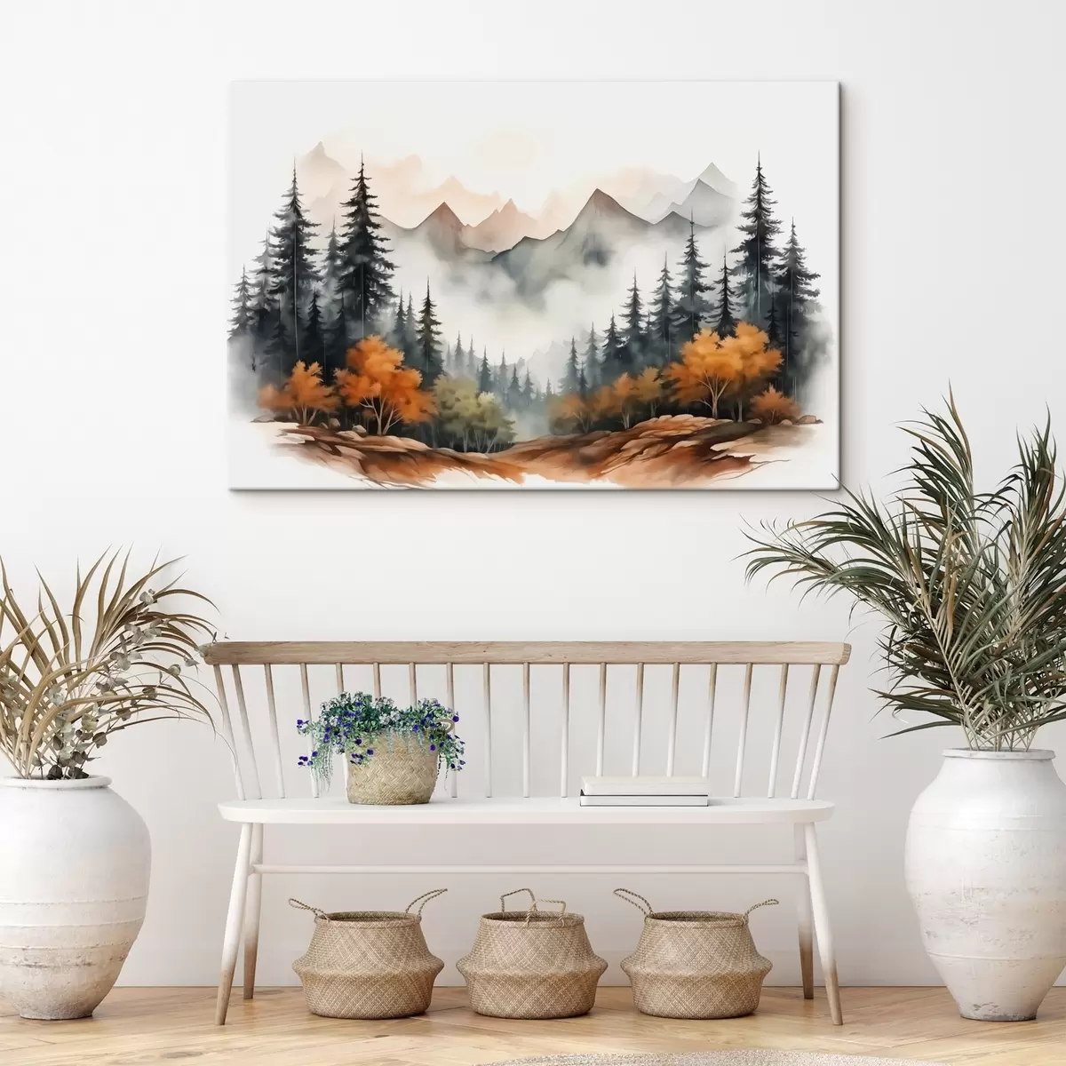Quadri Foresta sullo sfondo di montagne acquerello Nr s41240