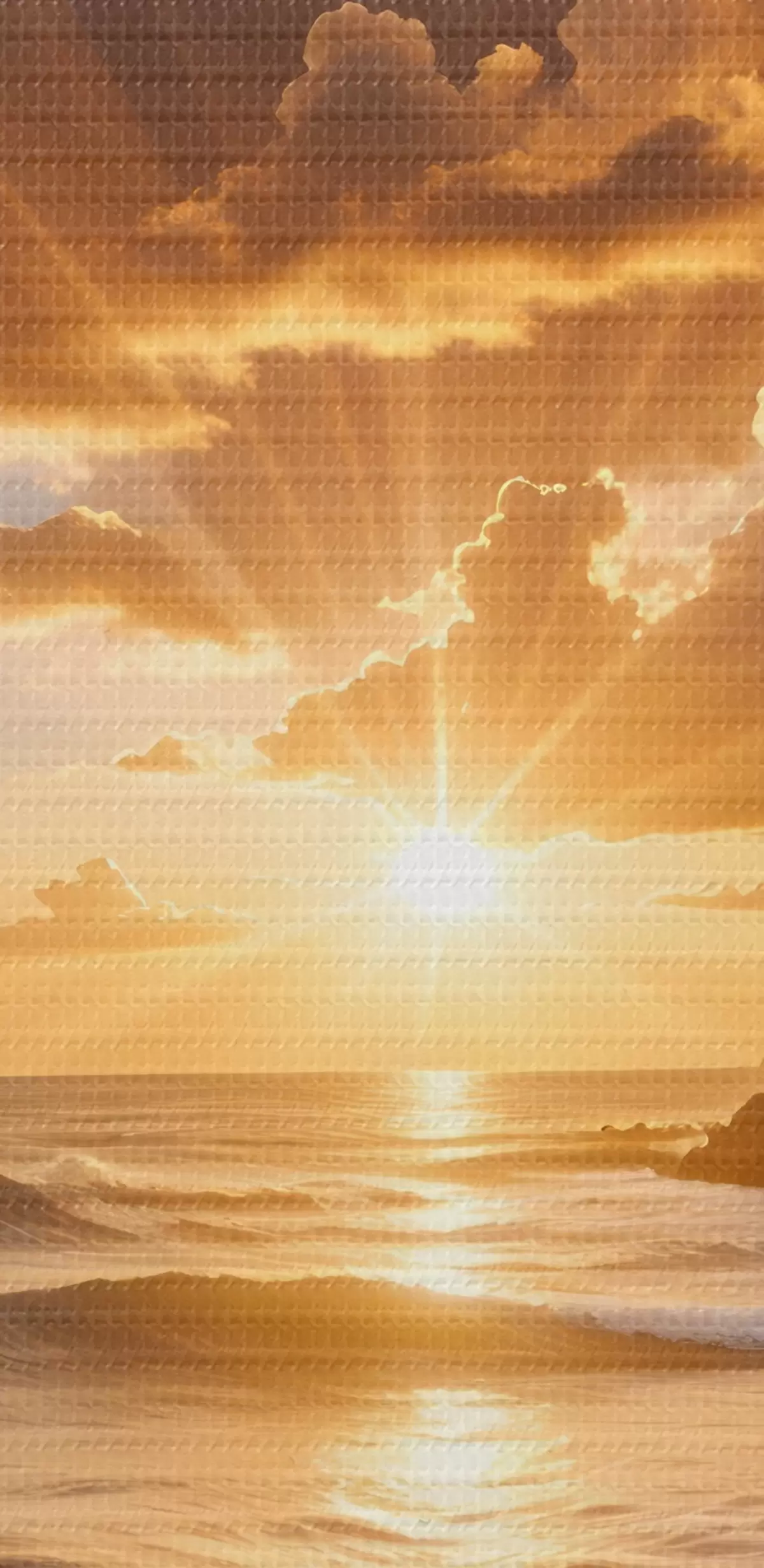 carta da parati Un tramonto drammatico su una costa rocciosa, con onde che si infrangono e nuvole drammatiche nel cielo nr. s41245