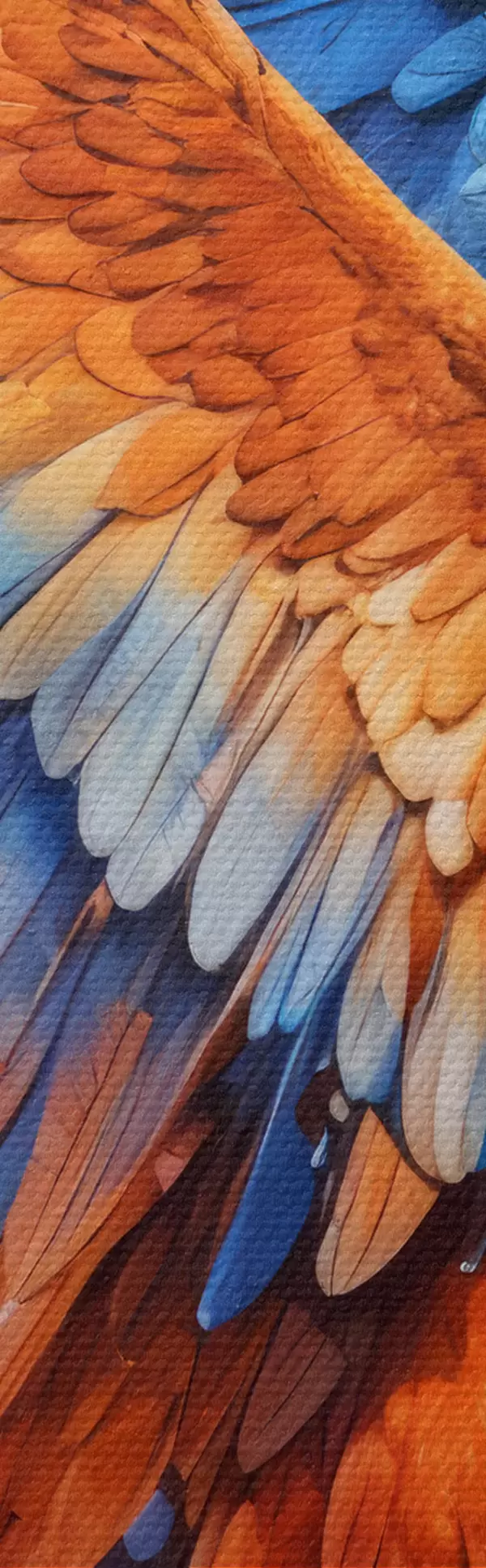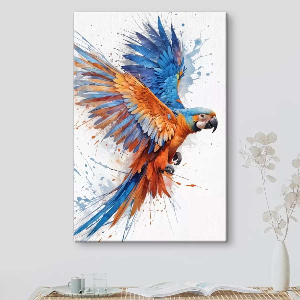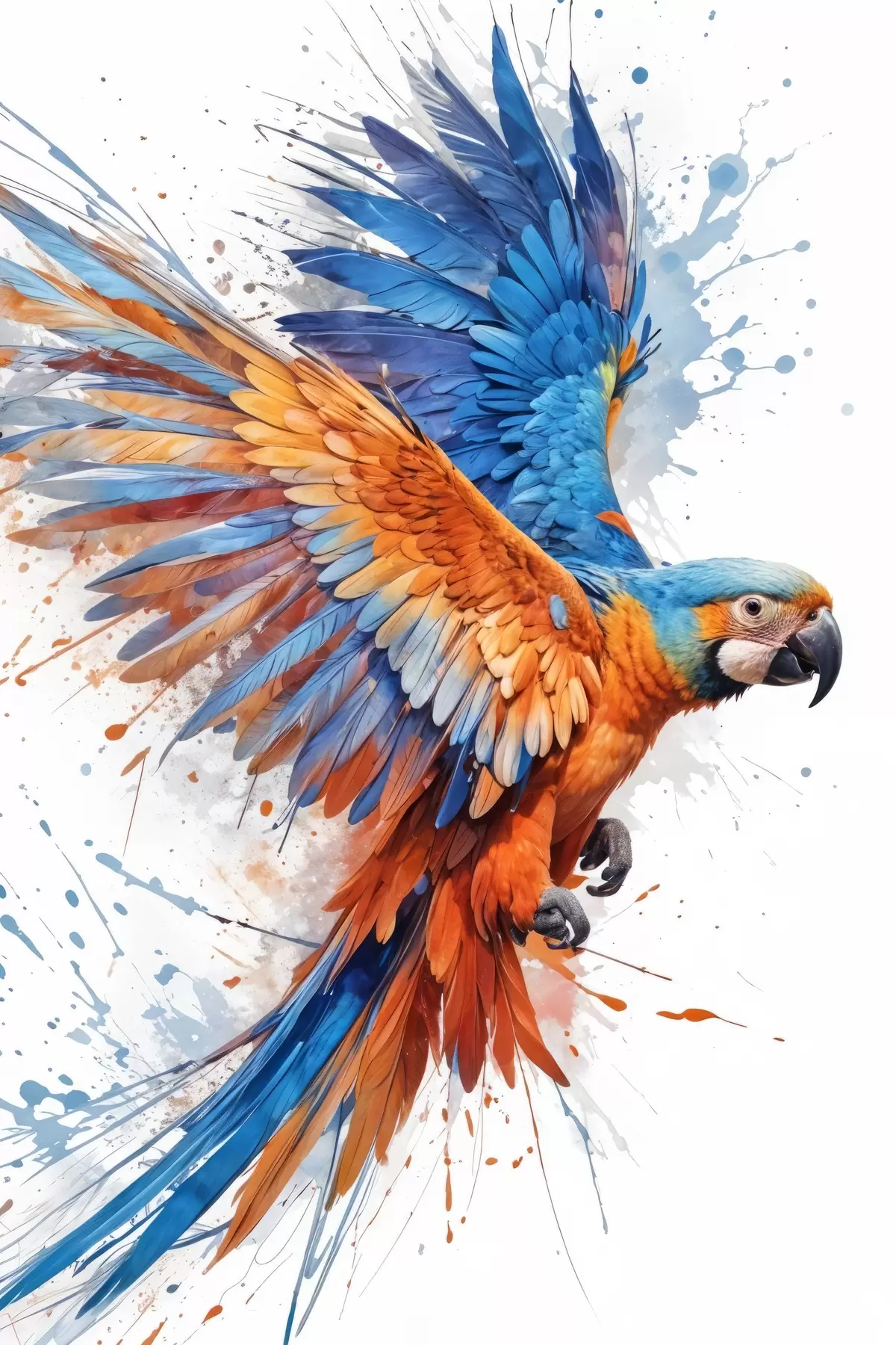 Quadri Pappagallo colorato con piume blu, arancioni e gialle in volo su uno sfondo schizzato Nr s41250