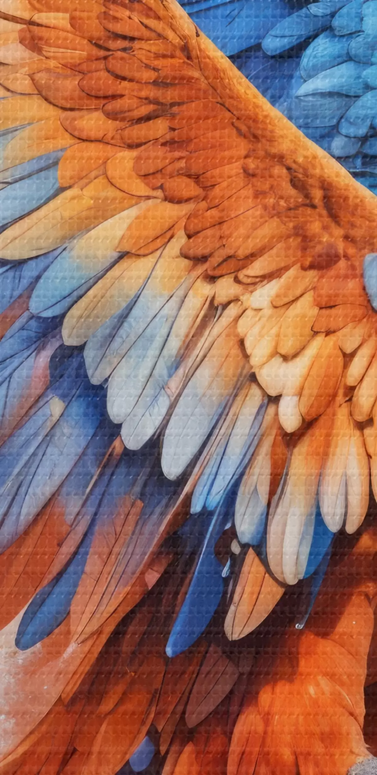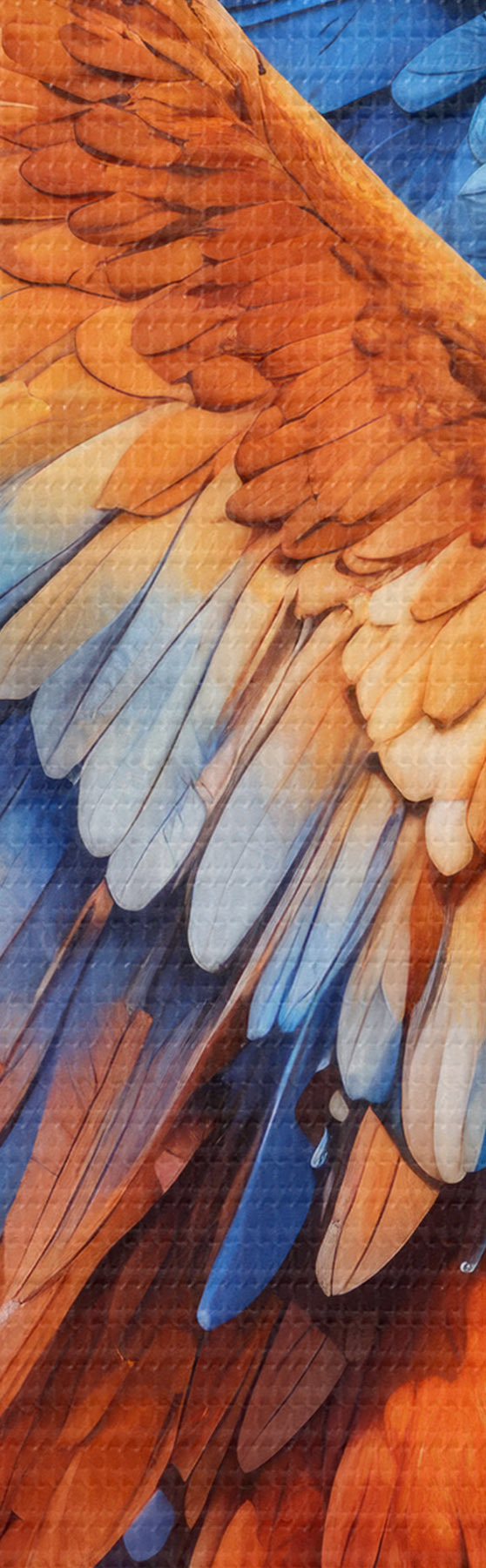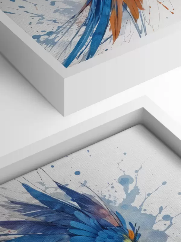 Quadri Pappagallo colorato con piume blu, arancioni e gialle in volo su uno sfondo schizzato Nr s41250