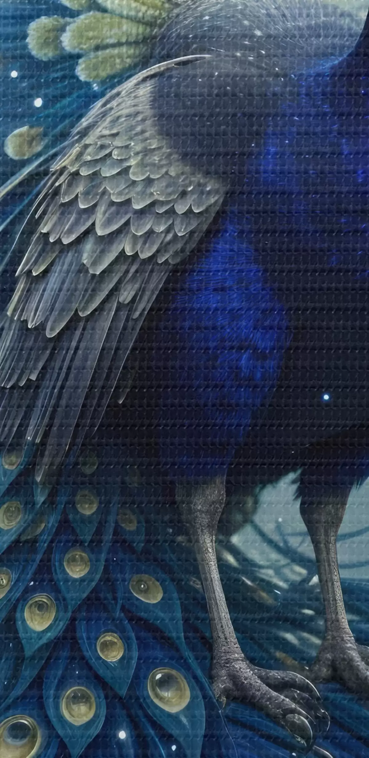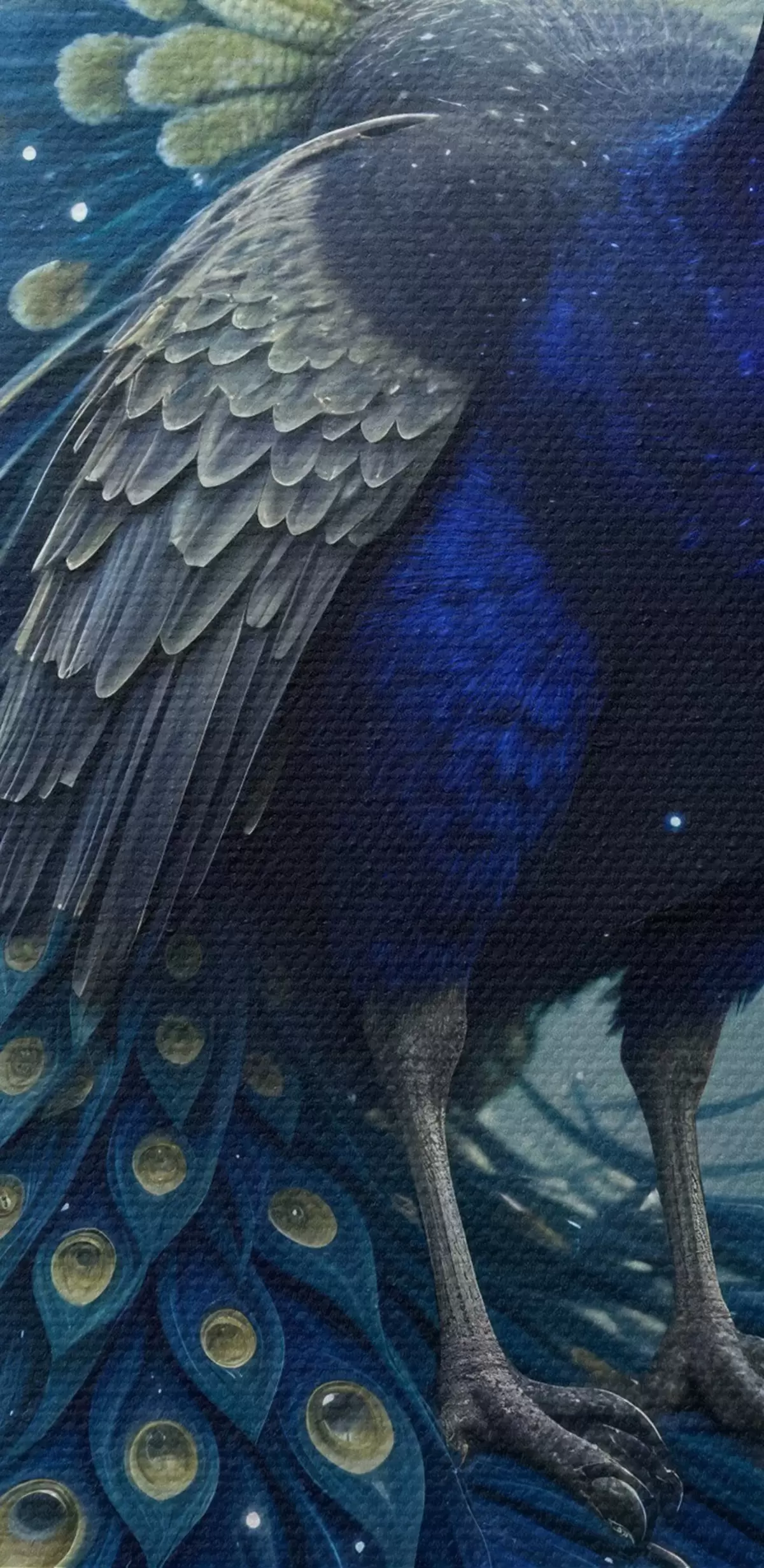 carta da parati Un vibrante e maestoso pavone contro un cielo notturno stellato, che crea un'atmosfera magica ed eterea nr. s41256
