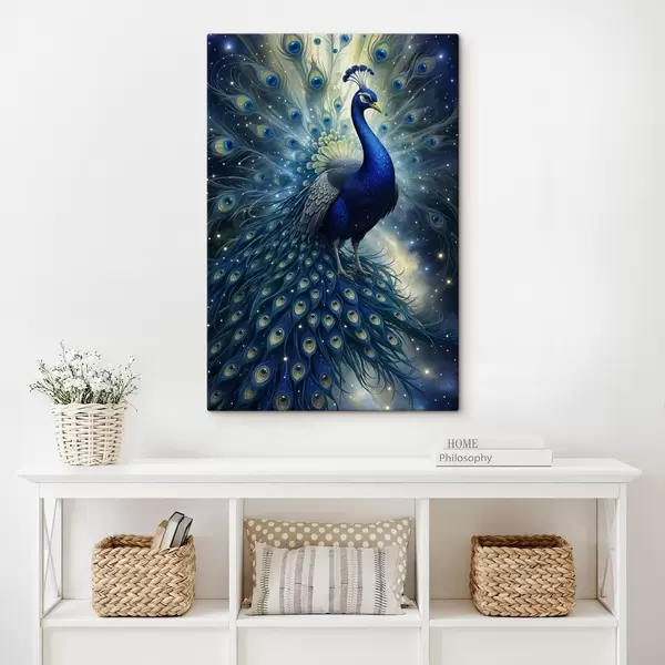 Quadri Un vibrante e maestoso pavone contro un cielo notturno stellato, che crea un'atmosfera magica ed eterea Nr s41256