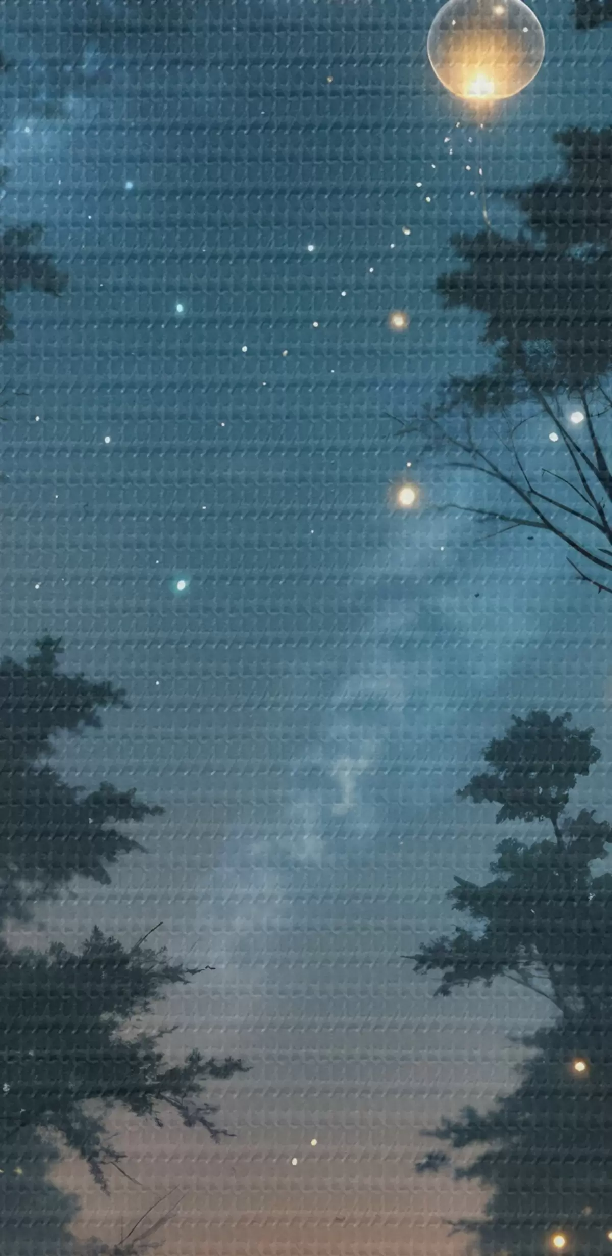 carta da parati Una foresta magica di notte, con sfere gialle e lucciole che fluttuano tra gli alberi, creando un'atmosfera stravagante nr. s41259