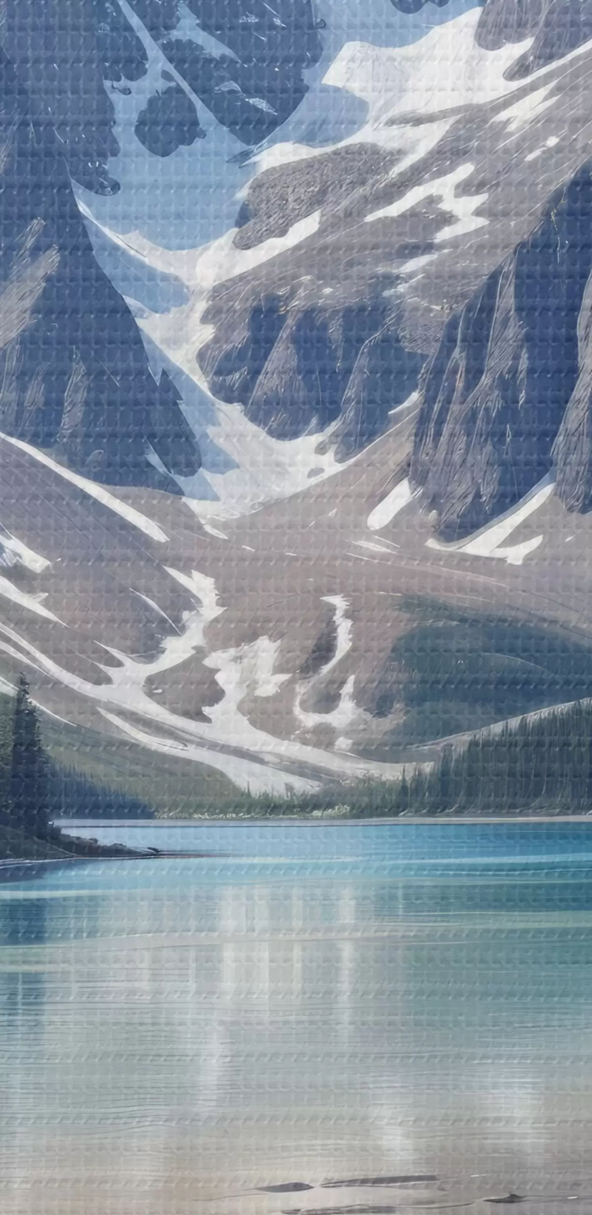 carta da parati Un lago alpino sereno, circondato da maestose montagne innevate, con una fitta foresta e un cielo nuvoloso  nr. s41264