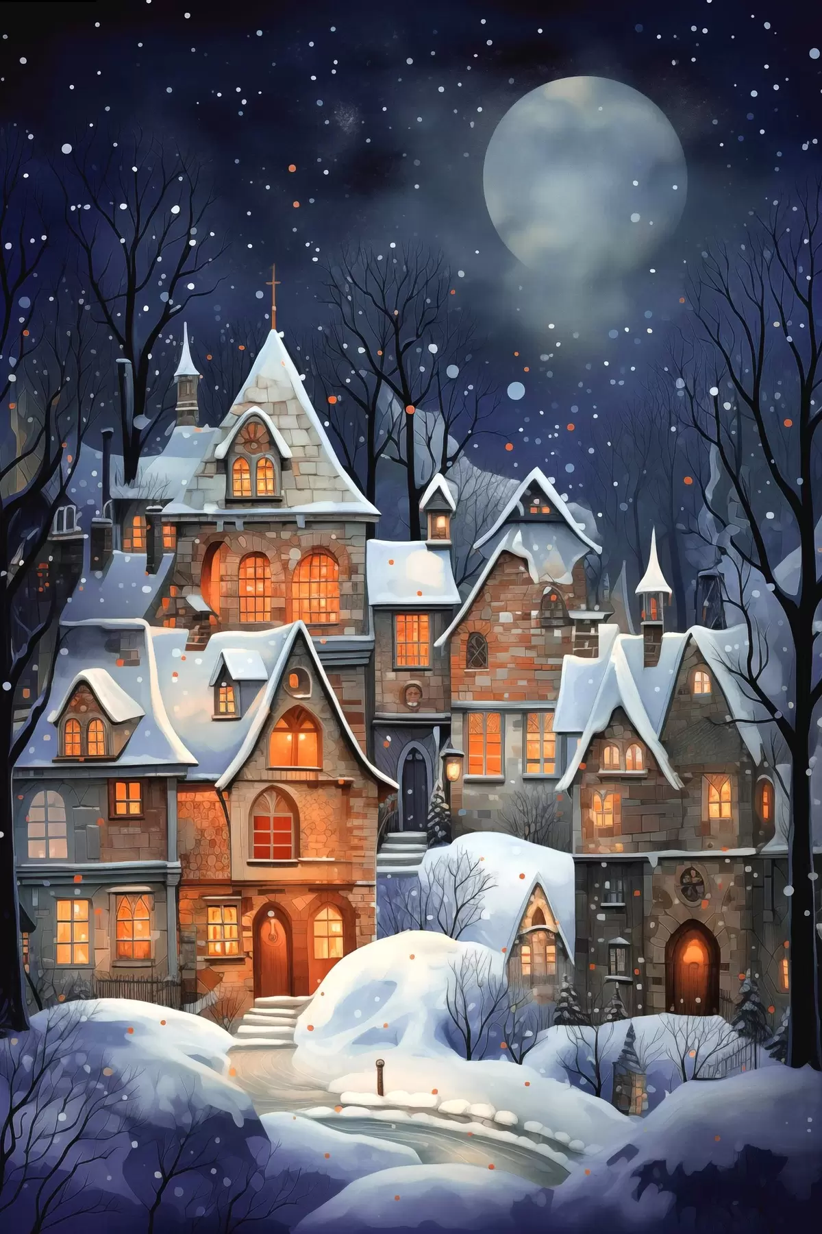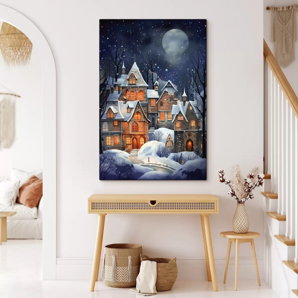 Quadri Case nella neve sullo sfondo del cielo stellato notturno Nr s41276