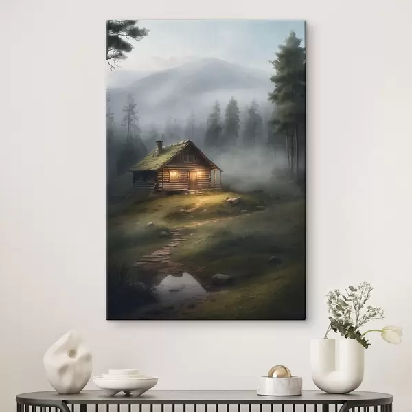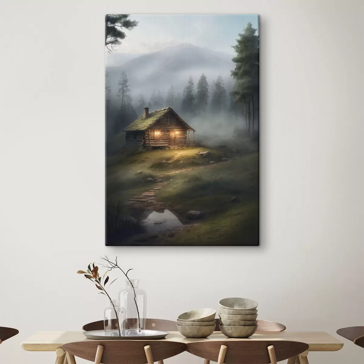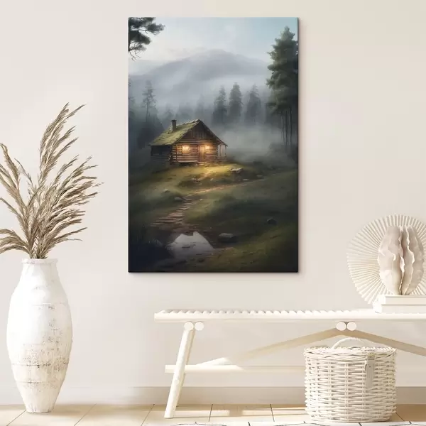 Quadri Cabina in una foresta nebbiosa Nr s41304