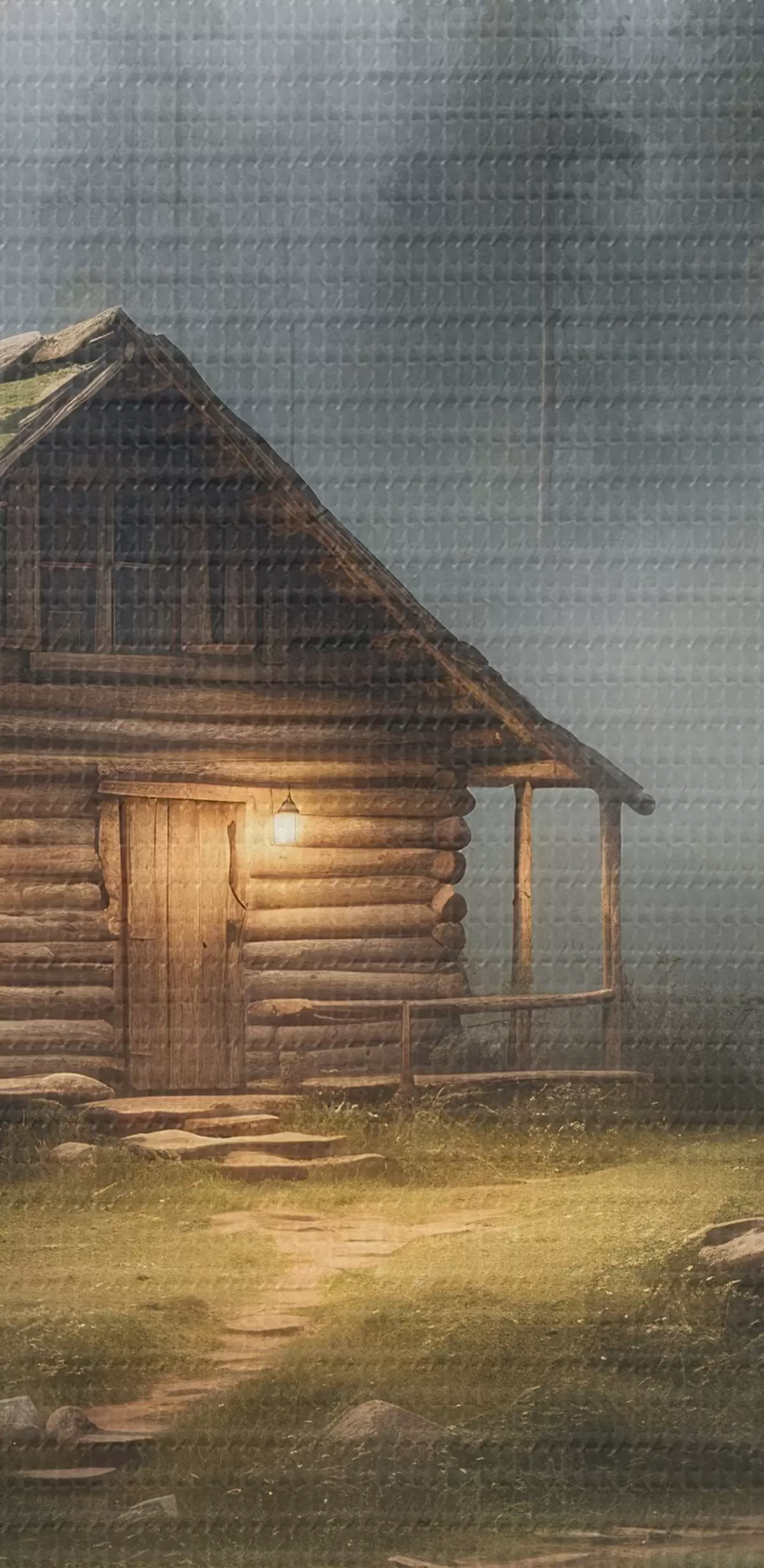 carta da parati Cabina in una foresta nebbiosa nr. s41304