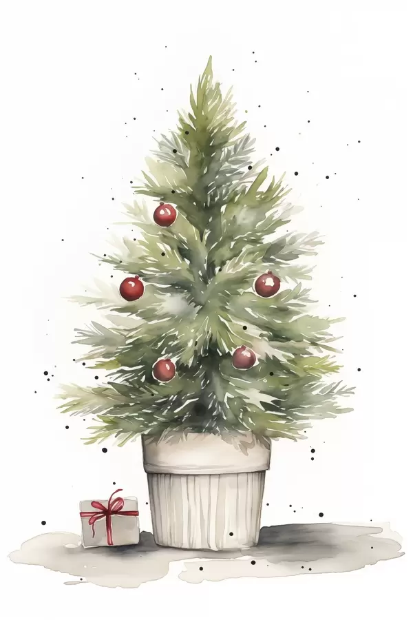 Quadri Albero di Natale acquerellato nel vaso, pino, regalo Nr s41361