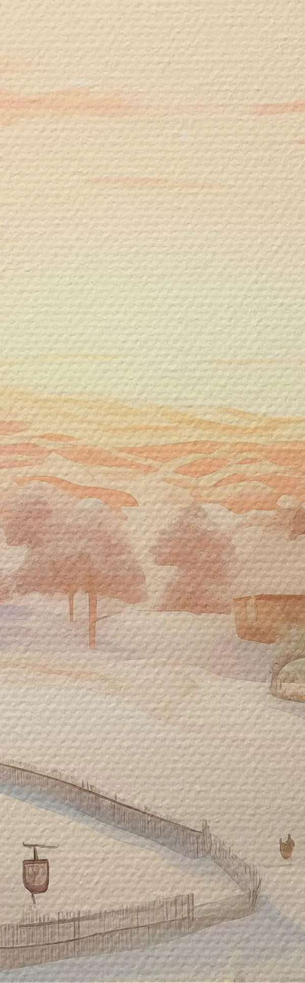 carta da parati Villaggio invernale al tramonto, case coperte di neve e pini nr. s41380
