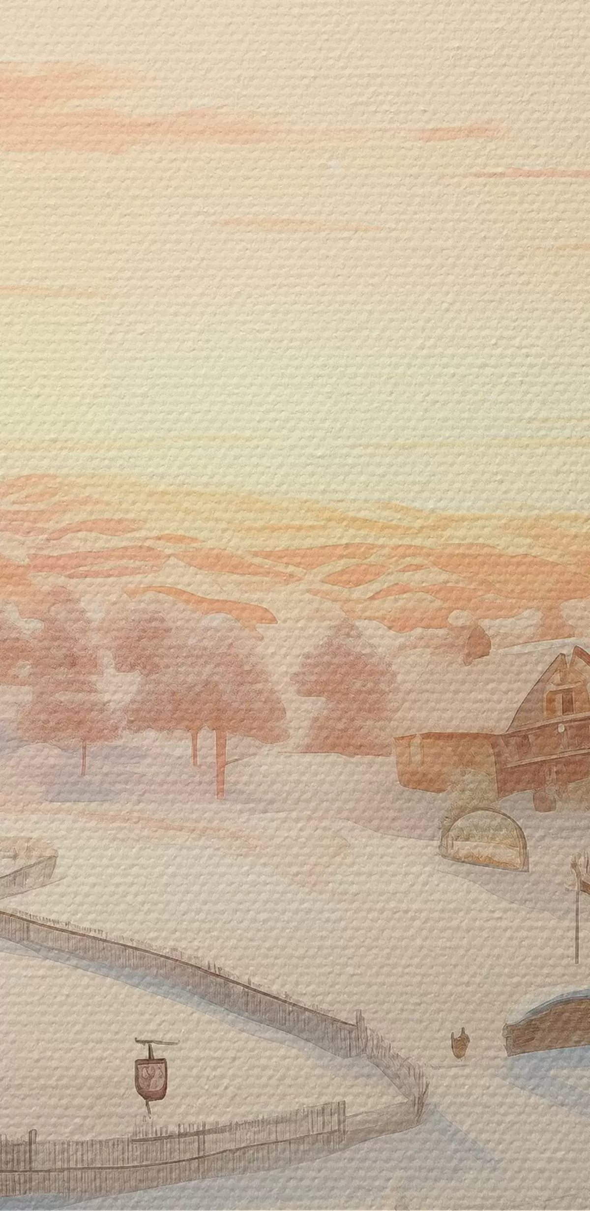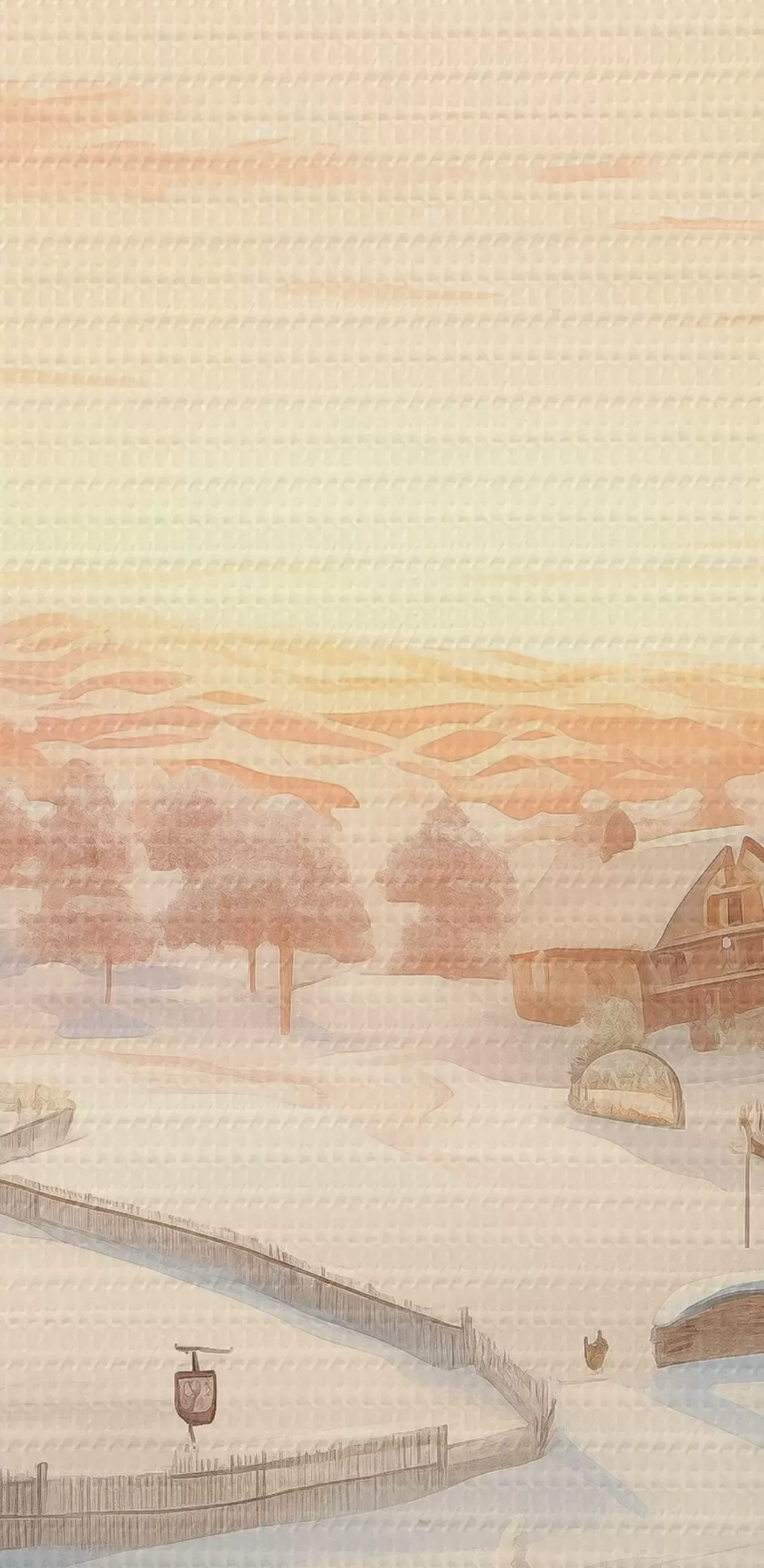 carta da parati Villaggio invernale al tramonto, case coperte di neve e pini nr. s41380