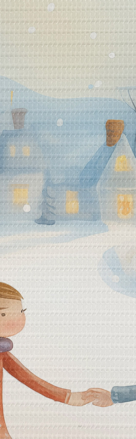 carta da parati Ragazze nel villaggio invernale, fiocchi di neve, acquerello, case, foresta nr. s41385