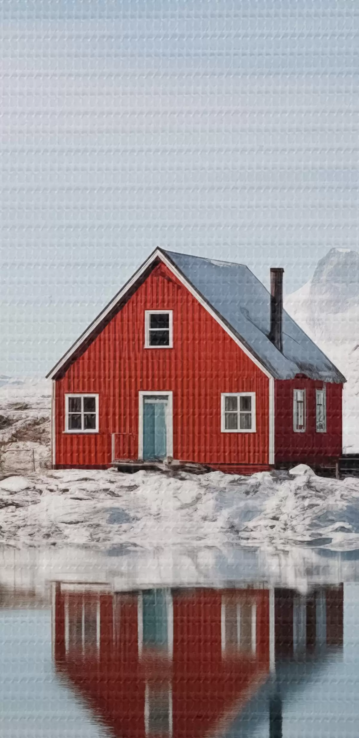 carta da parati Paesaggio invernale minimalista casa rossa sul lago nr. s41437