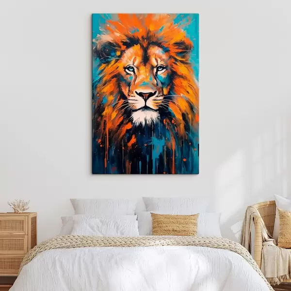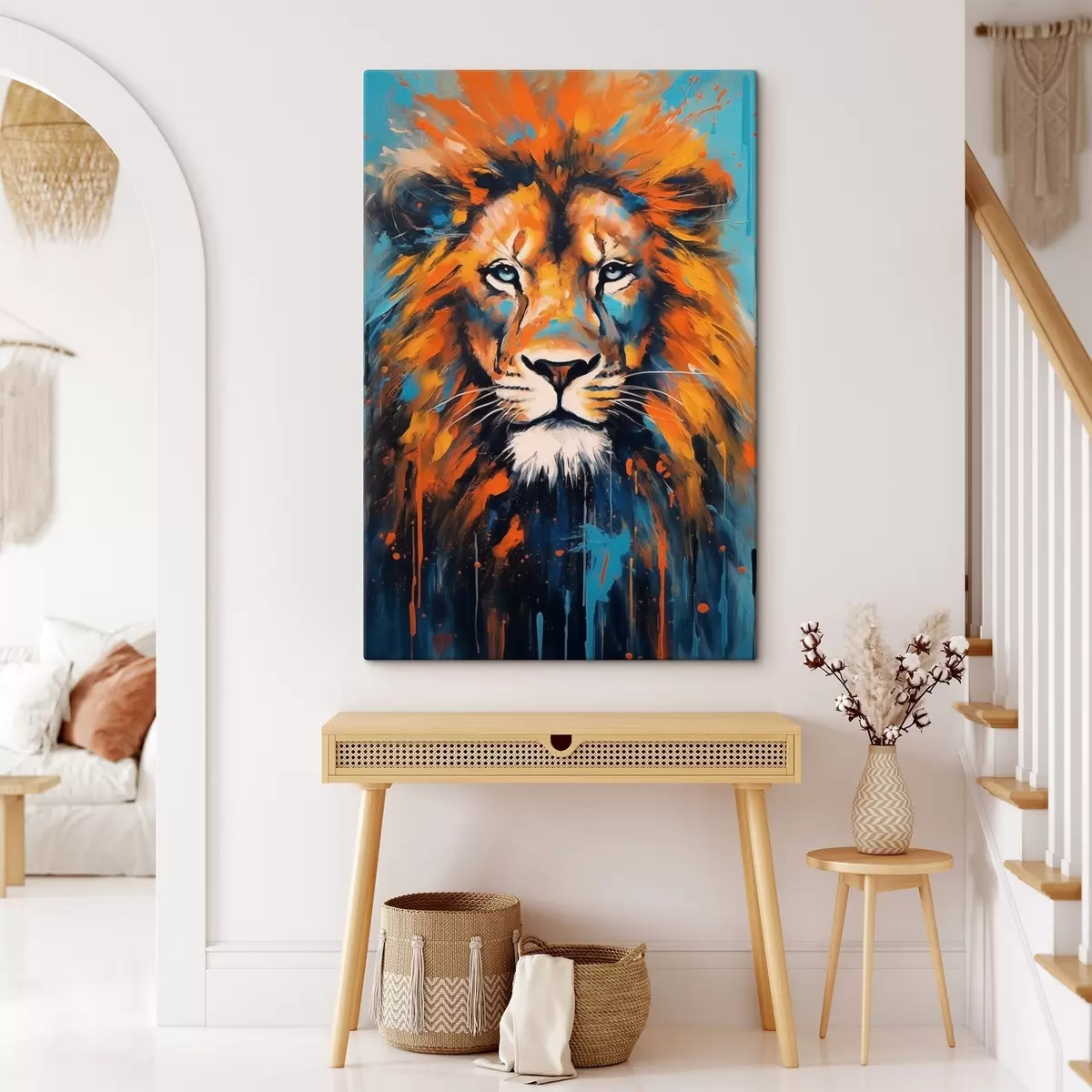 Quadri Luminoso leone astratto dai toni blu fuoco Nr s41480