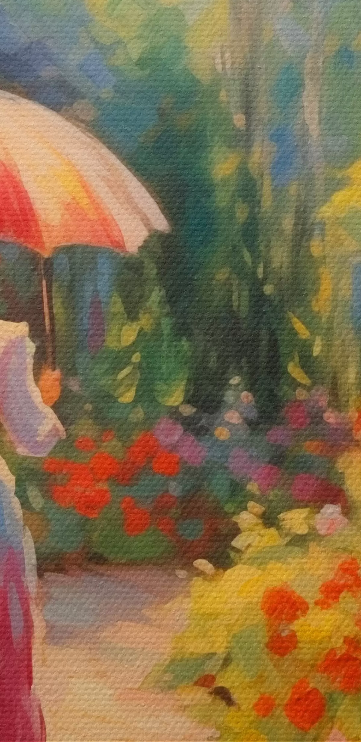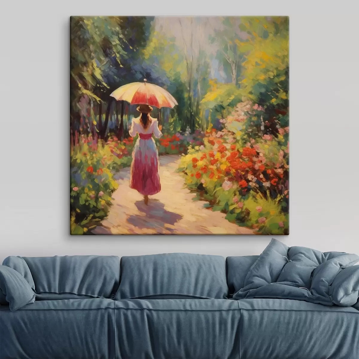 Quadri Signora con ombrello in un giardino fiorito Nr s41495