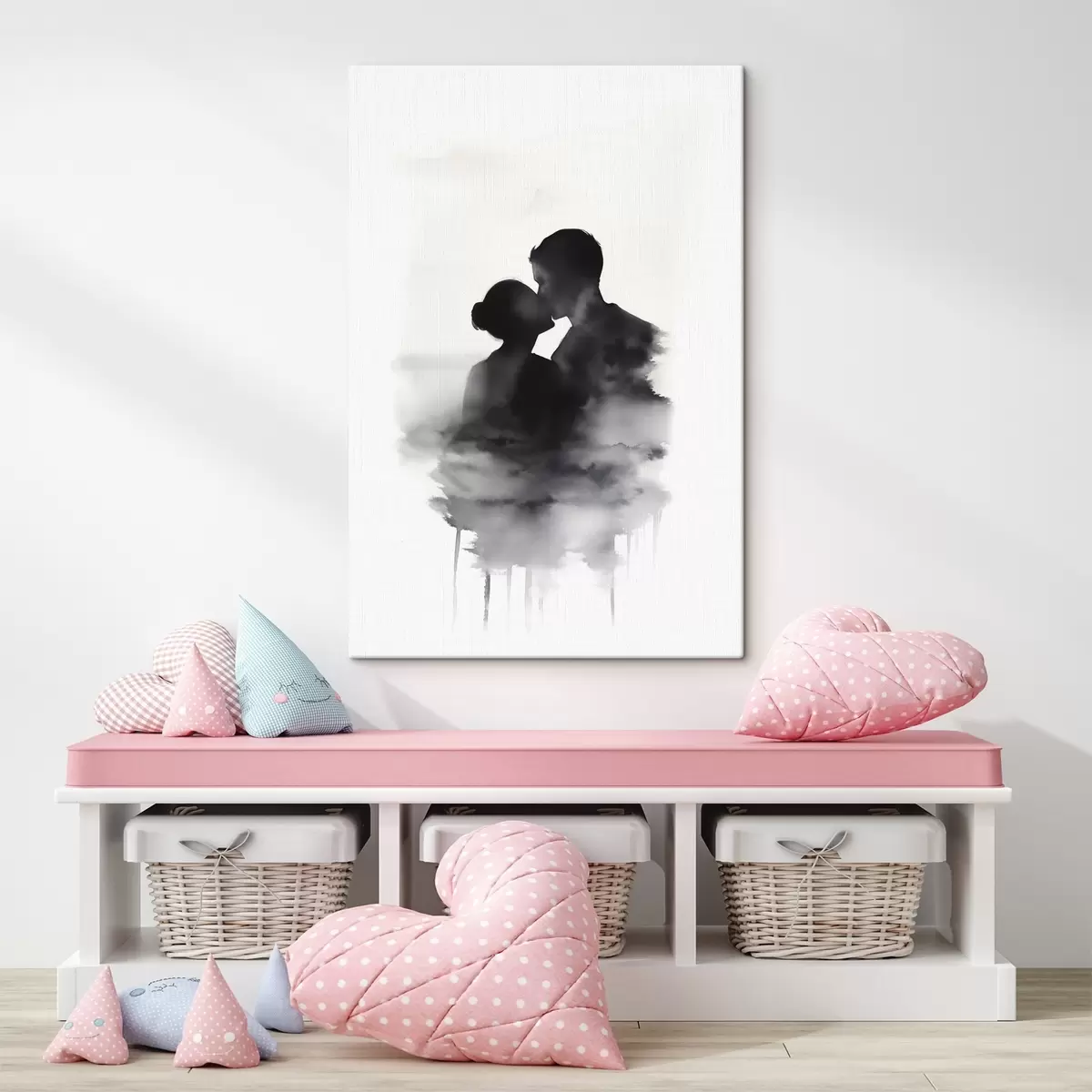 Quadri Silhouette di una coppia con tecnica ad acquerello in bianco e nero Nr s41496