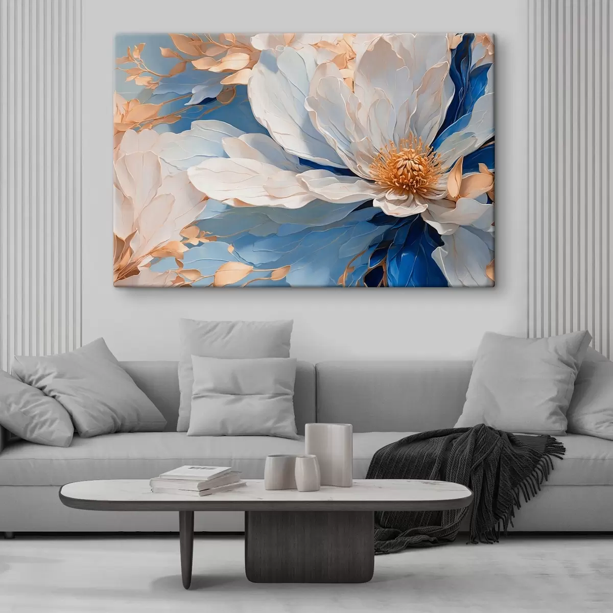 Quadri Primo piano di un fiore con petali bianchi e blu Nr s41512