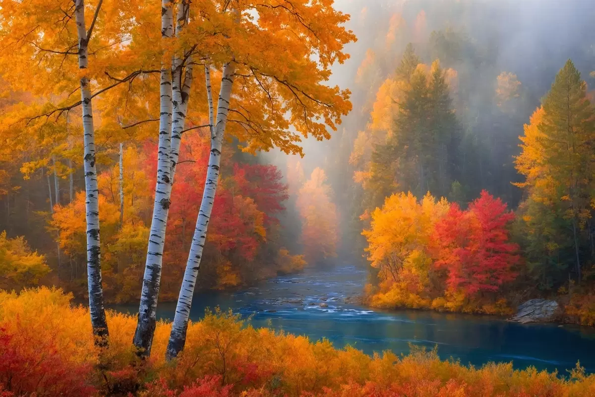 carta da parati Fiume in una foresta autunnale nr. s41592