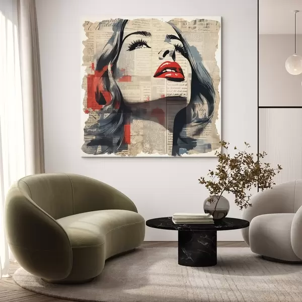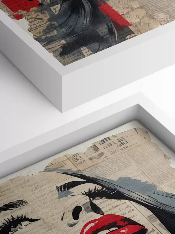 Quadri Ritratto di una ragazza su un vecchio giornale in stile collage Nr s41619