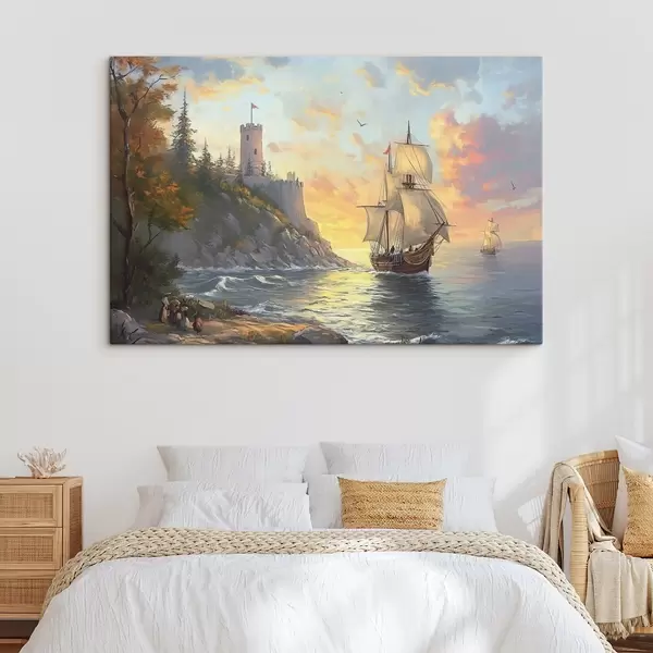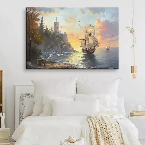 Quadri nave vicino alla riva all'alba Nr s41626