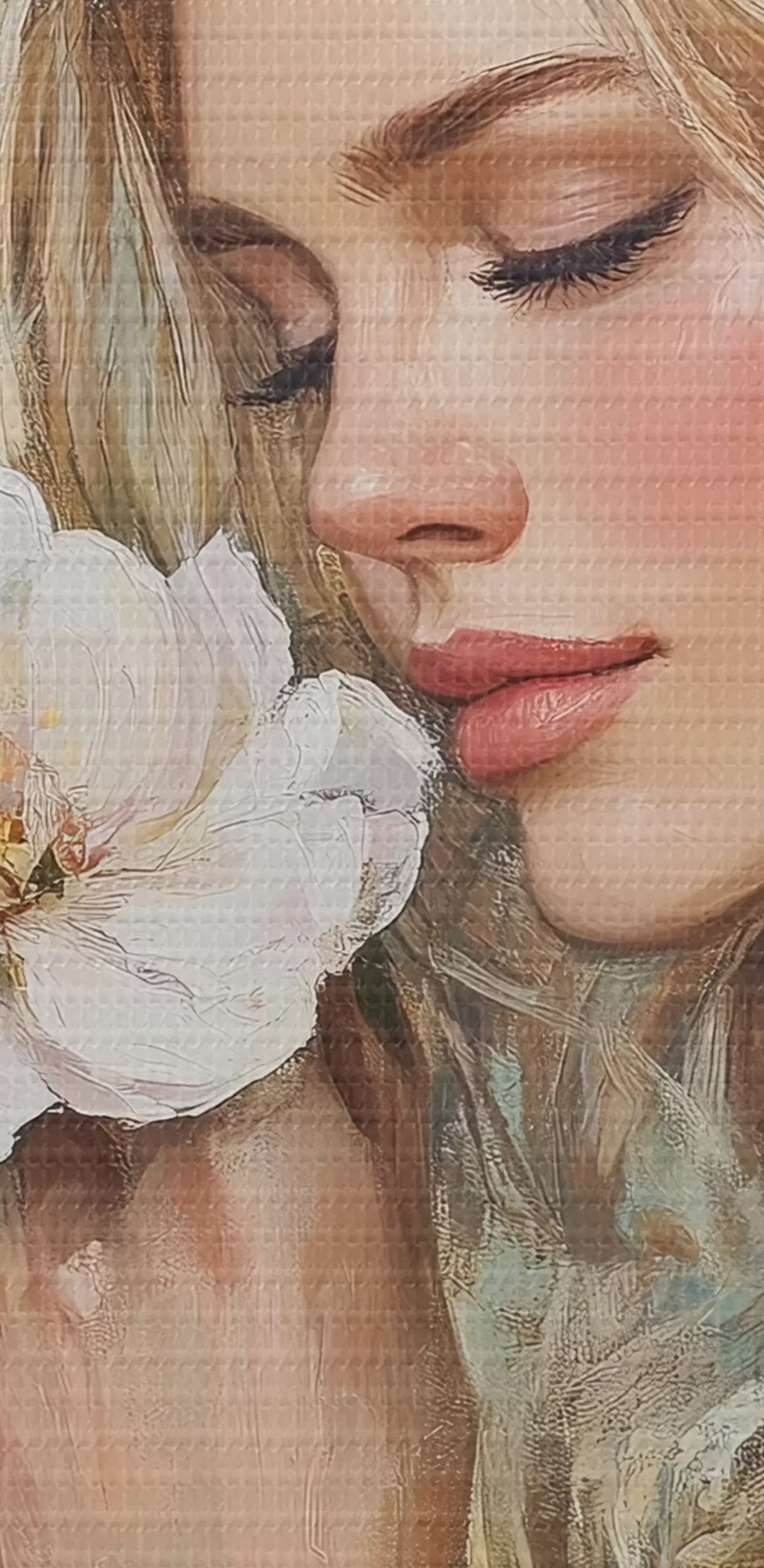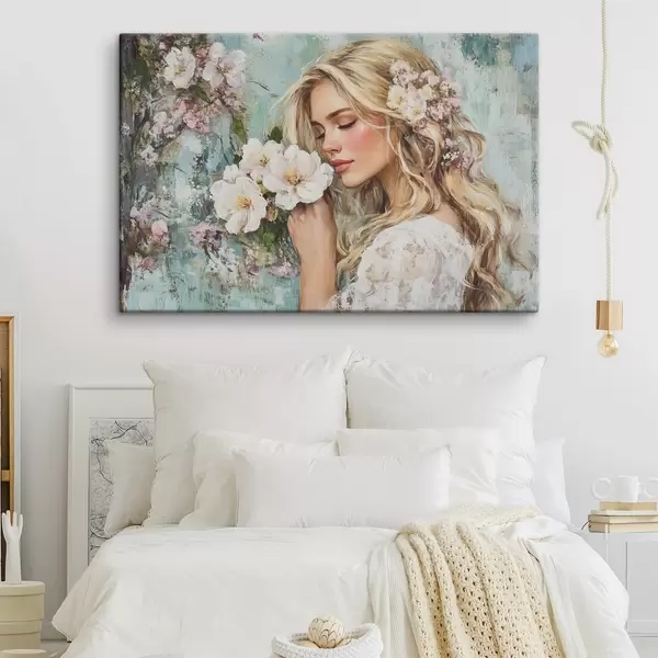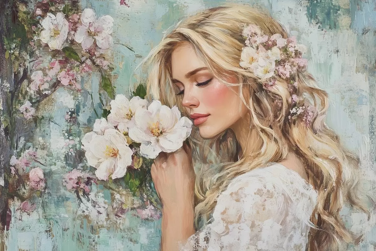 carta da parati ragazza vicino ai fiori con colori ad olio nr. s41632