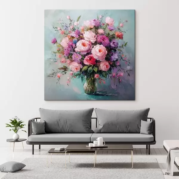 Quadri bouquet lussureggiante con colori ad olio Nr s41636