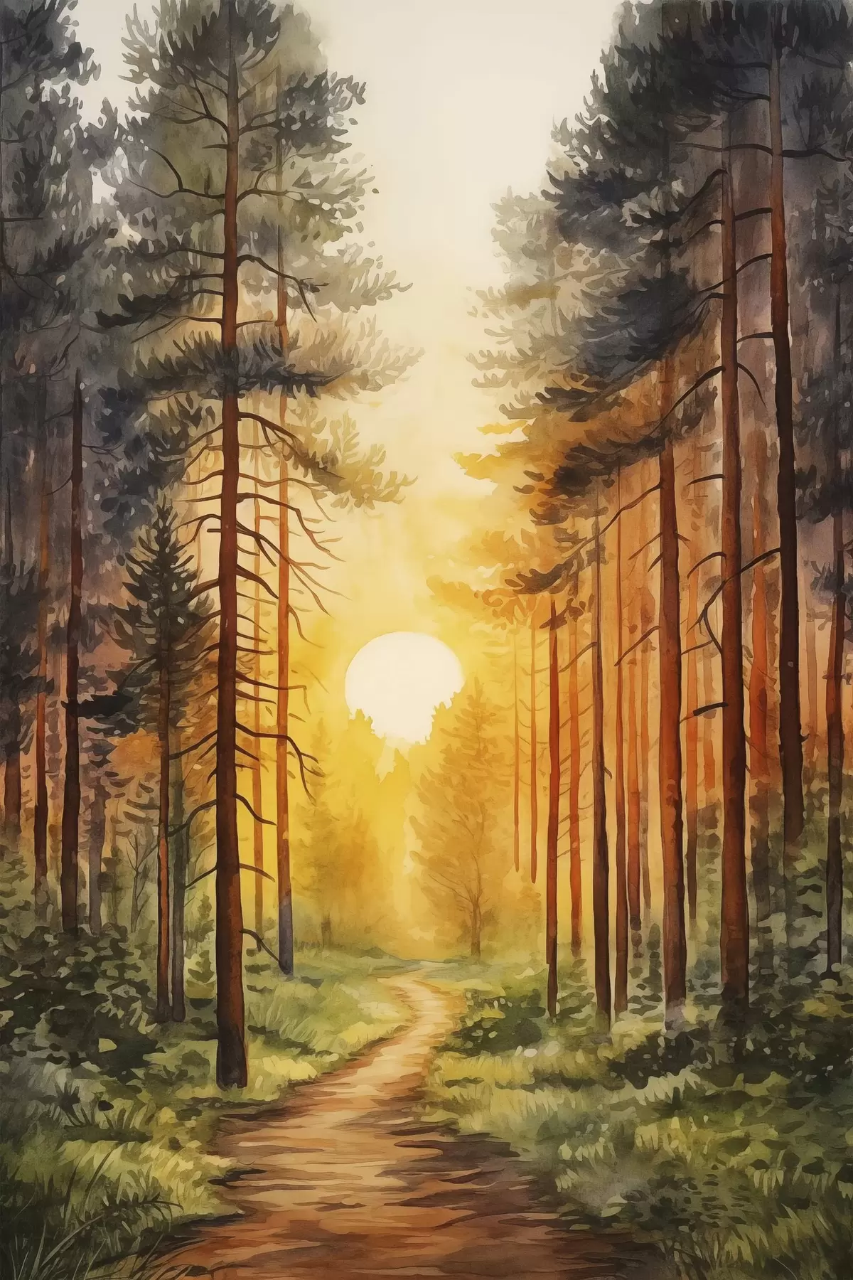 Quadri Tramonto in pineta, acquerello, bellezza della natura Nr s41638