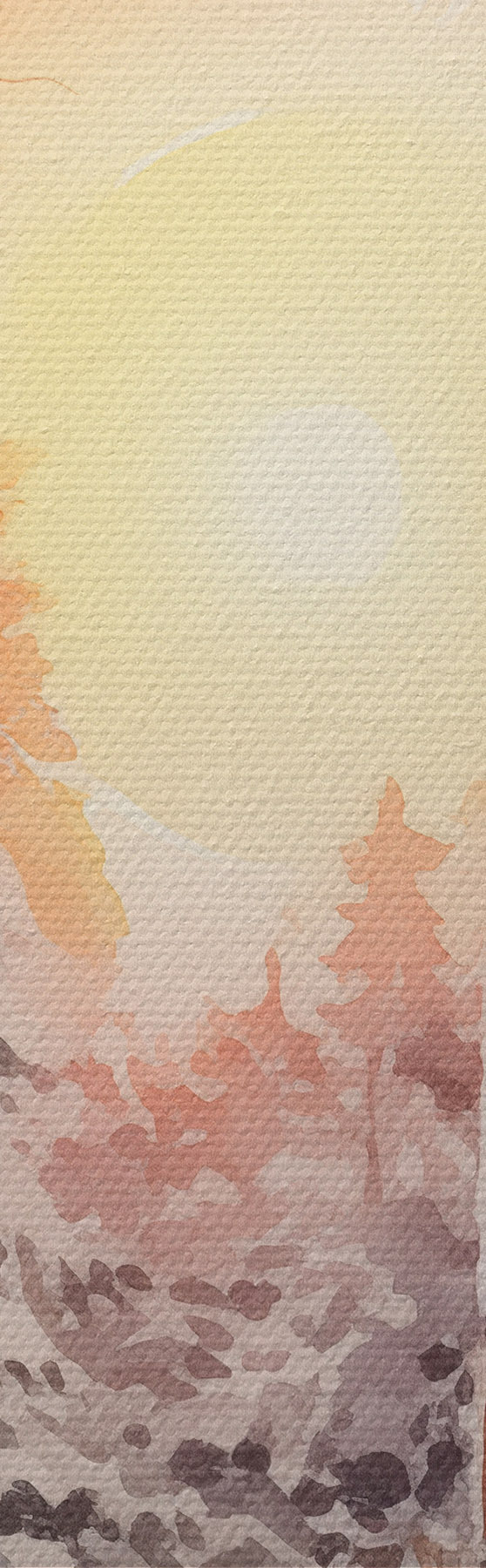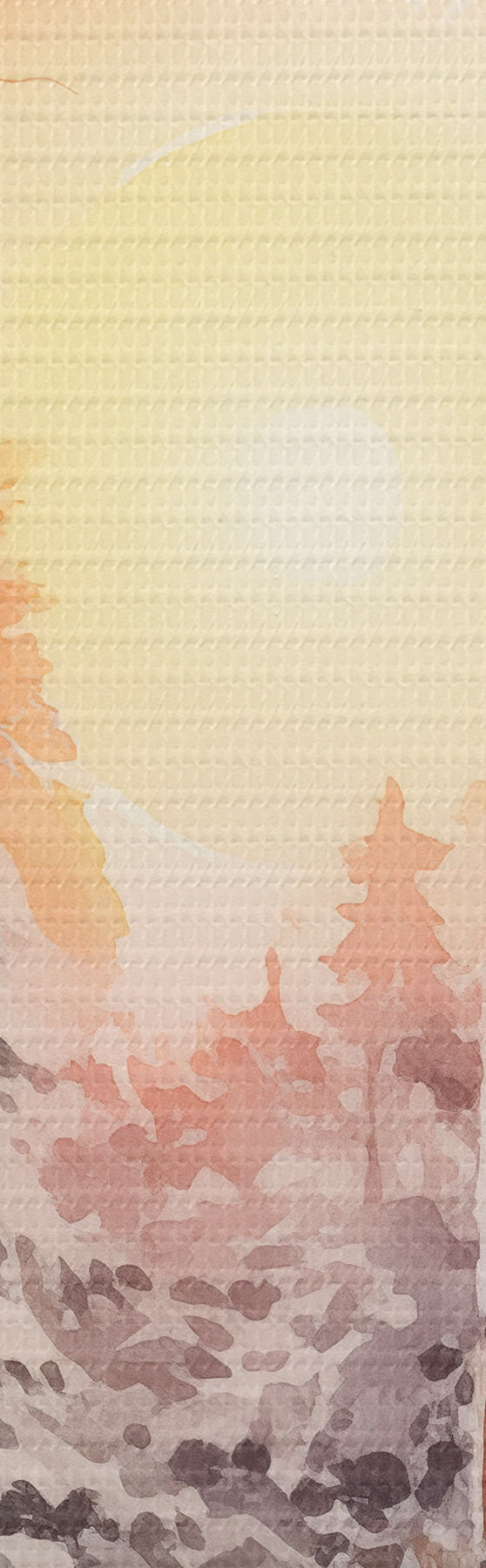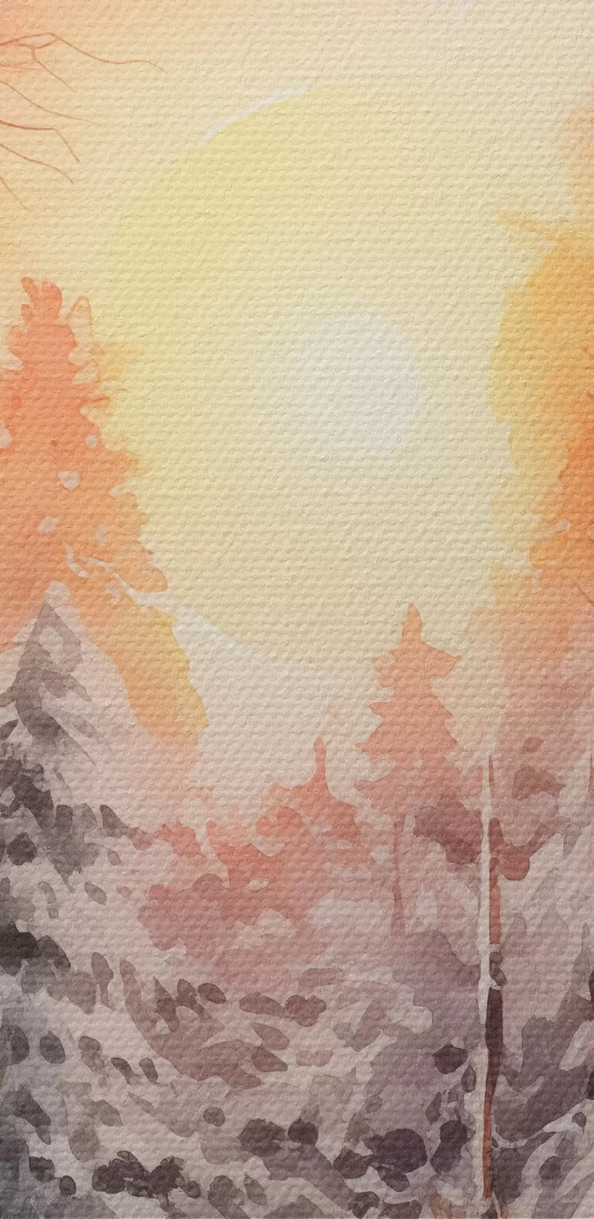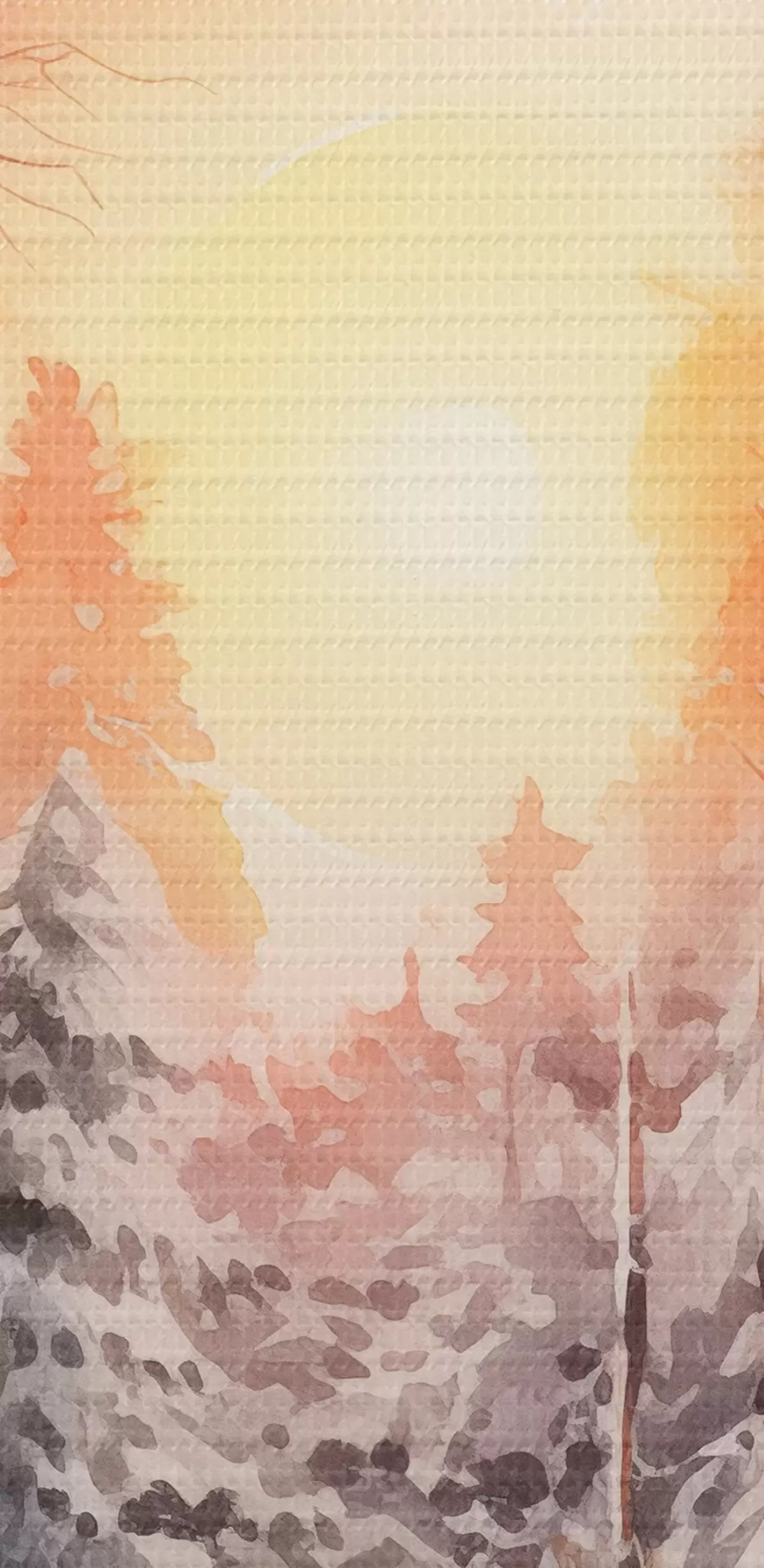 carta da parati Bellissimo inverno, acquerello foresta, innevato, alberi, cielo rosa, tramonto nr. s41641
