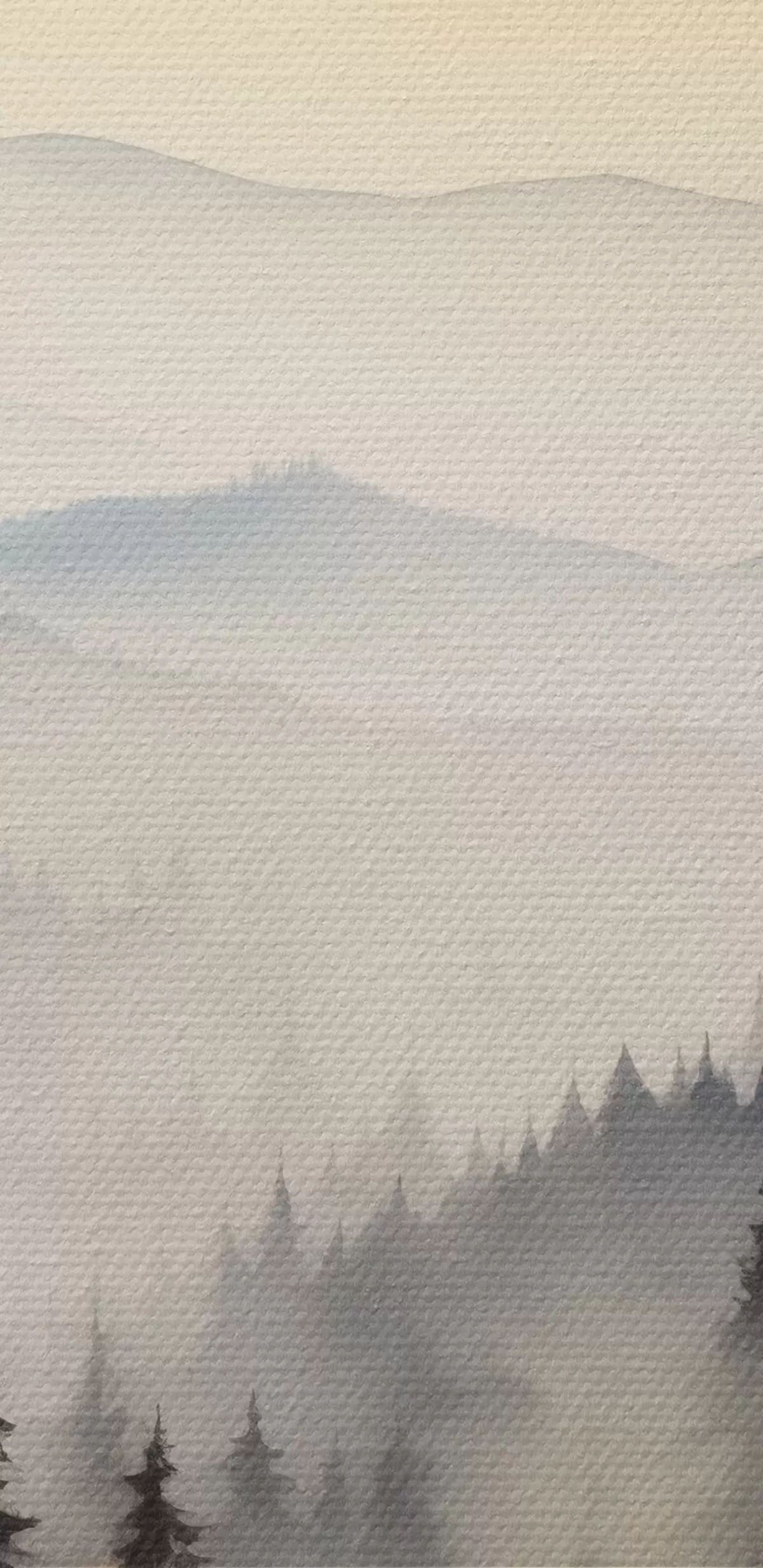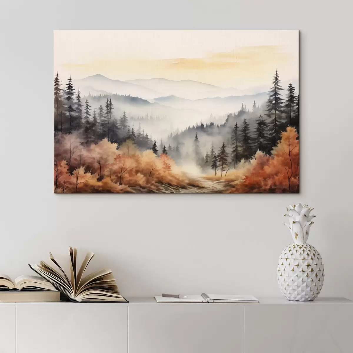 Quadri Bella nebbia di montagna, foresta autunnale, acquerello Nr s41646