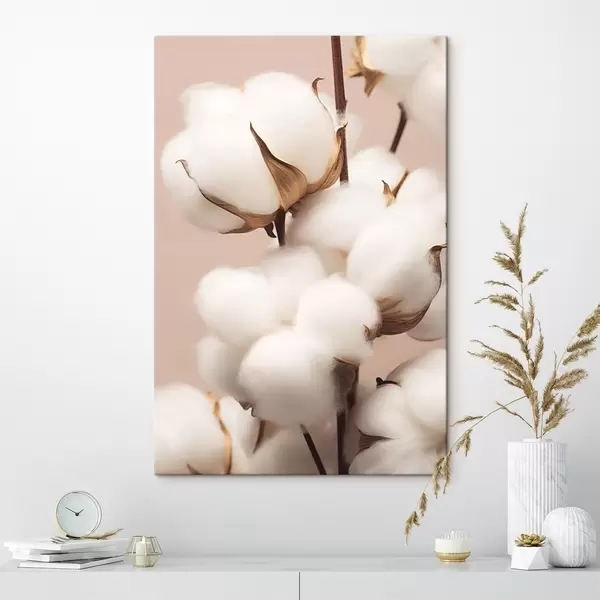 carta da parati Fiori di cotone su sfondo beige nr. s41706