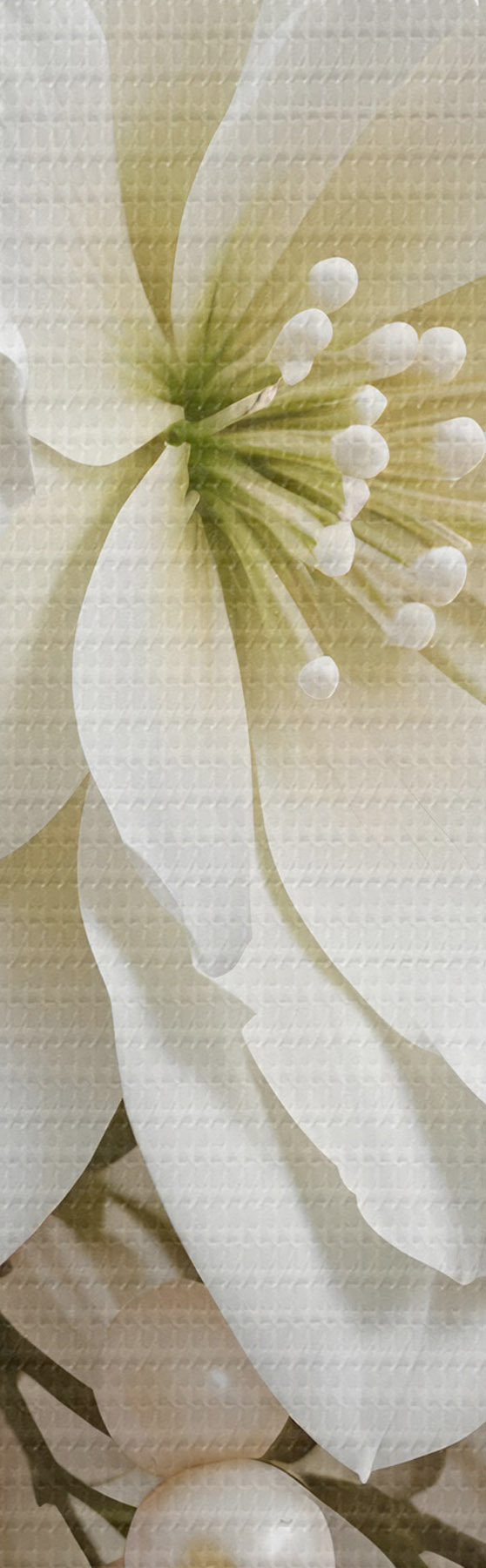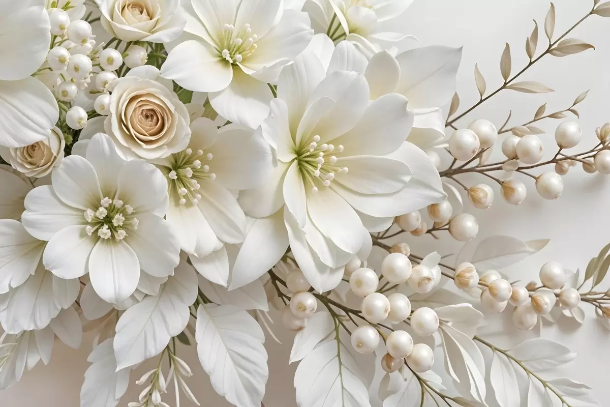 carta da parati Delicati fiori bianchi, tra cui gigli, rose e altri fiori con petali morbidi e vellutati  nr. s41722