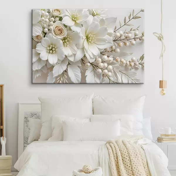 Quadri Delicati fiori bianchi, tra cui gigli, rose e altri fiori con petali morbidi e vellutati Nr s41722
