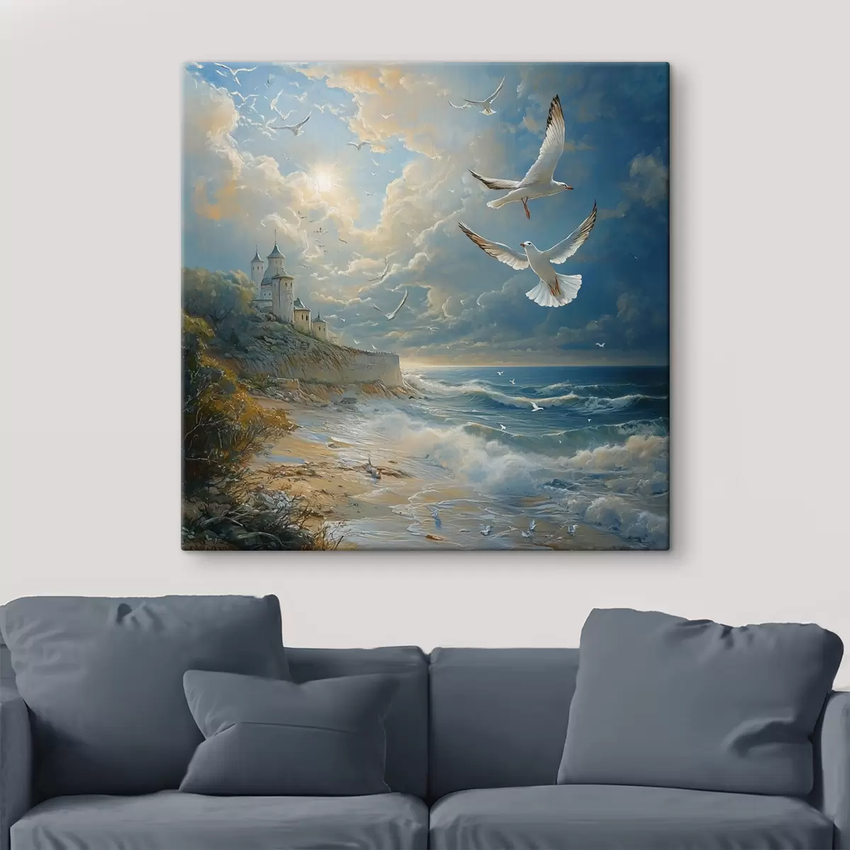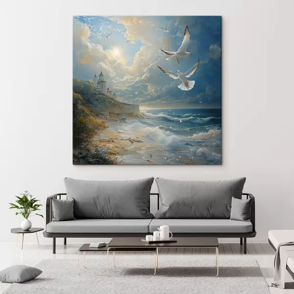 Quadri La riva del mare e gli uccelli, nello stile della pittura ad olio Nr s41756