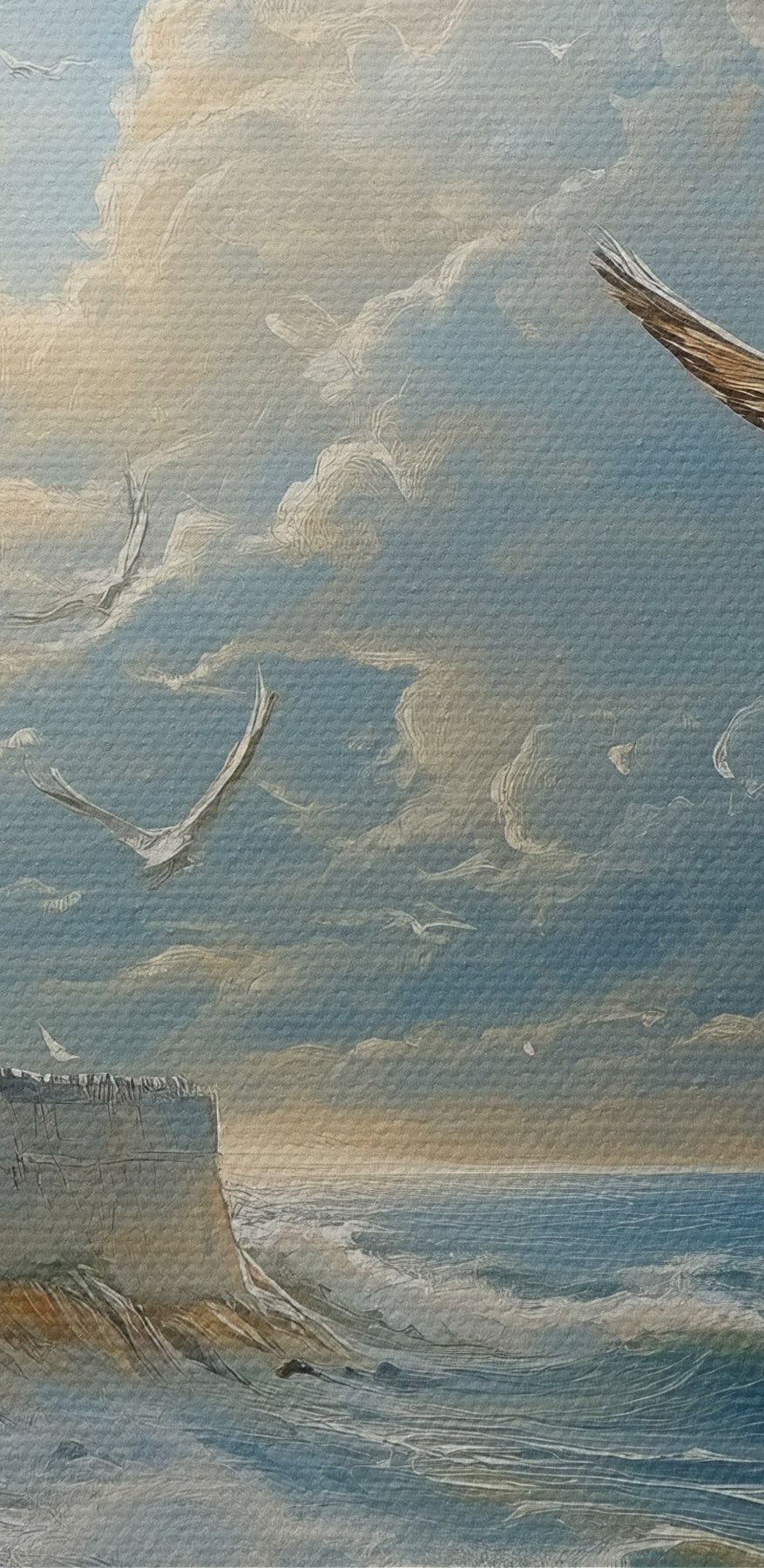 carta da parati La riva del mare e gli uccelli, nello stile della pittura ad olio nr. s41756