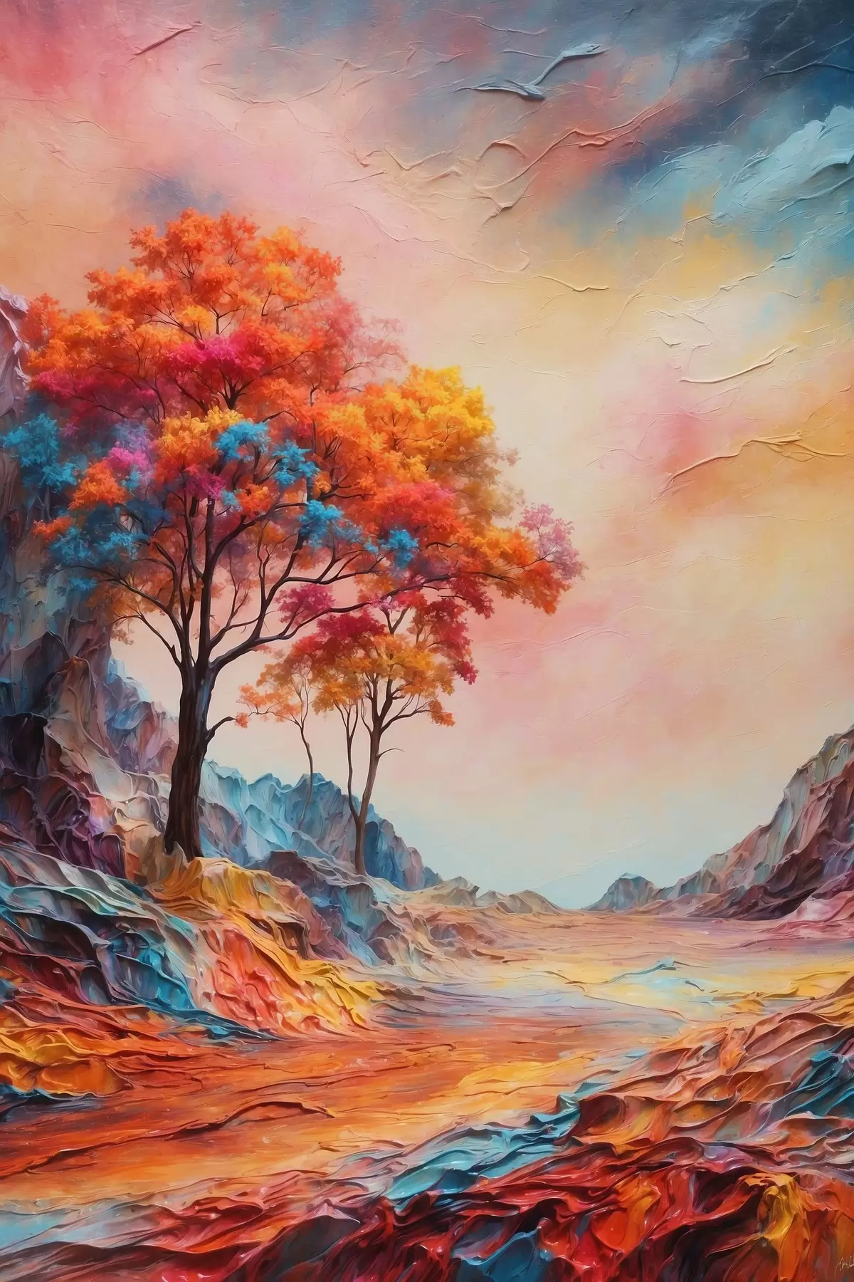 Quadri Alberi e montagne astratte multicolori Nr s41772