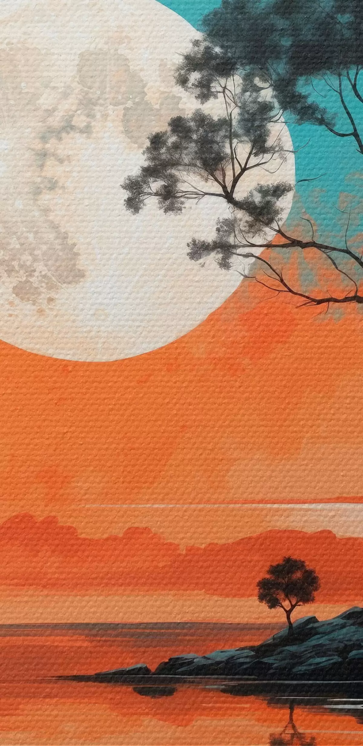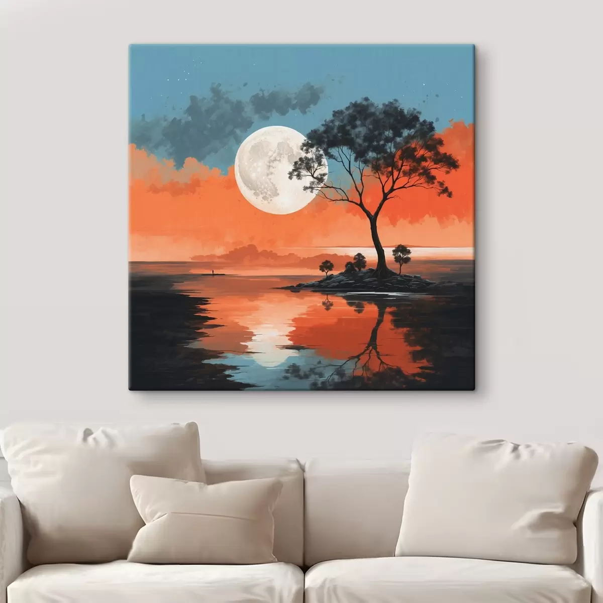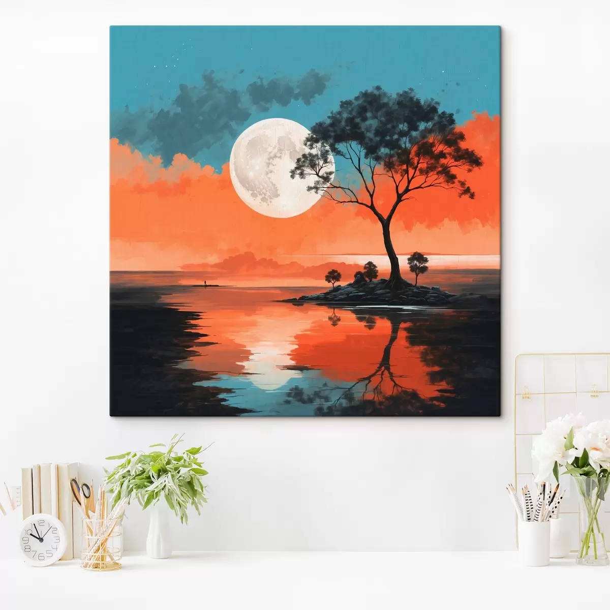 Quadri Albero al centro di un lago sullo sfondo della luna Nr s41775