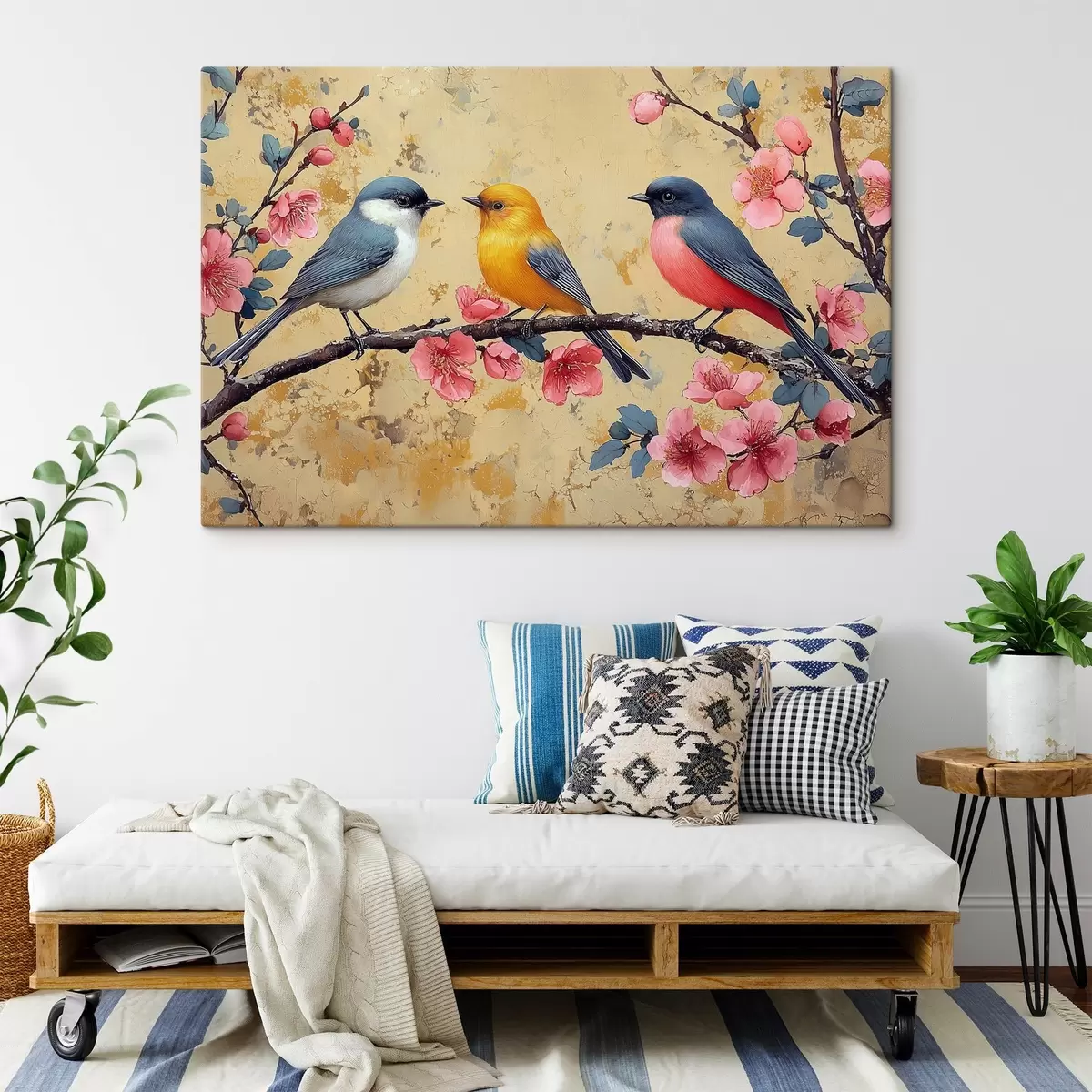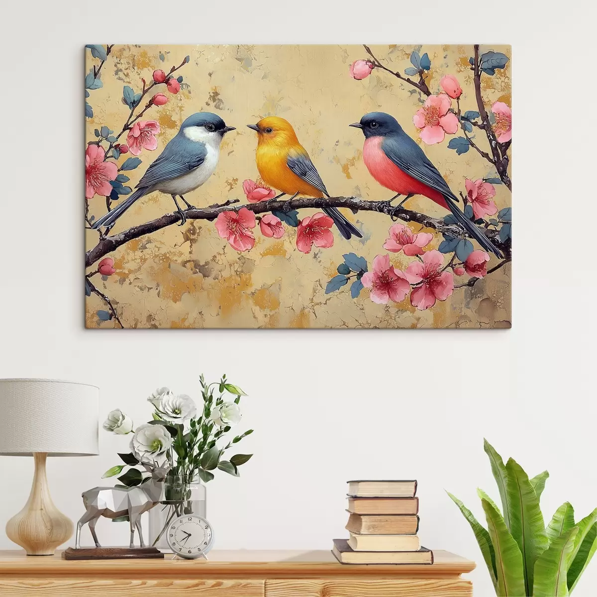 carta da parati Passeri su un ramo di sakura nello stile della pittura a olio nr. s41835