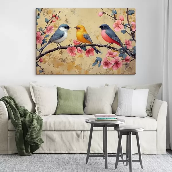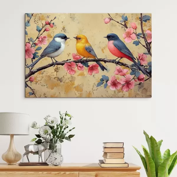 Quadri Passeri su un ramo di sakura nello stile della pittura a olio Nr s41835
