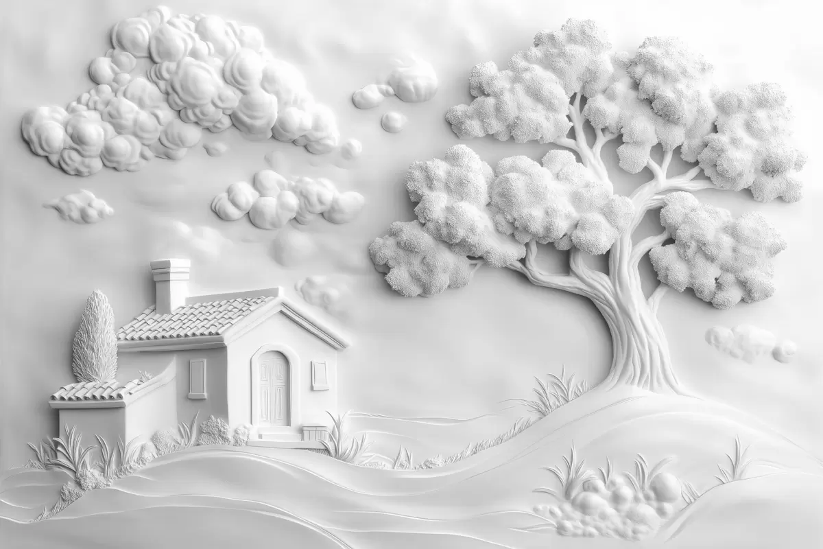 carta da parati imitazione 3D di stucco di una casetta del villaggio nr. s41878