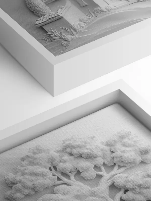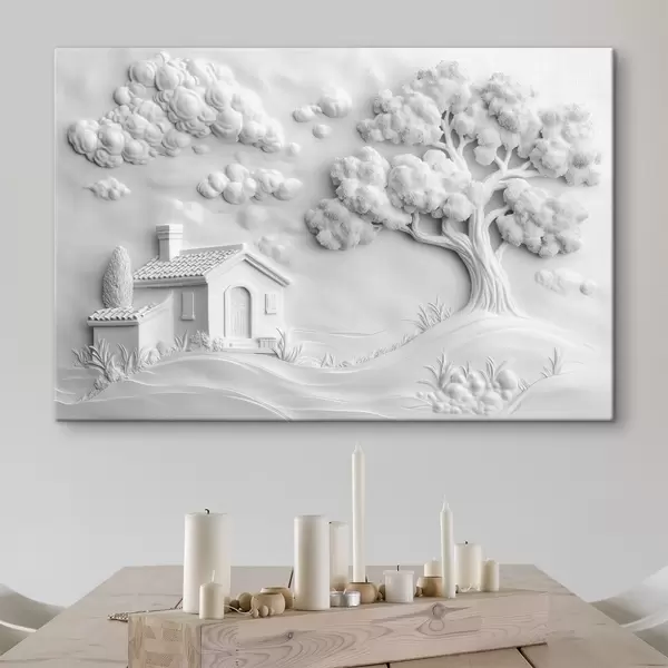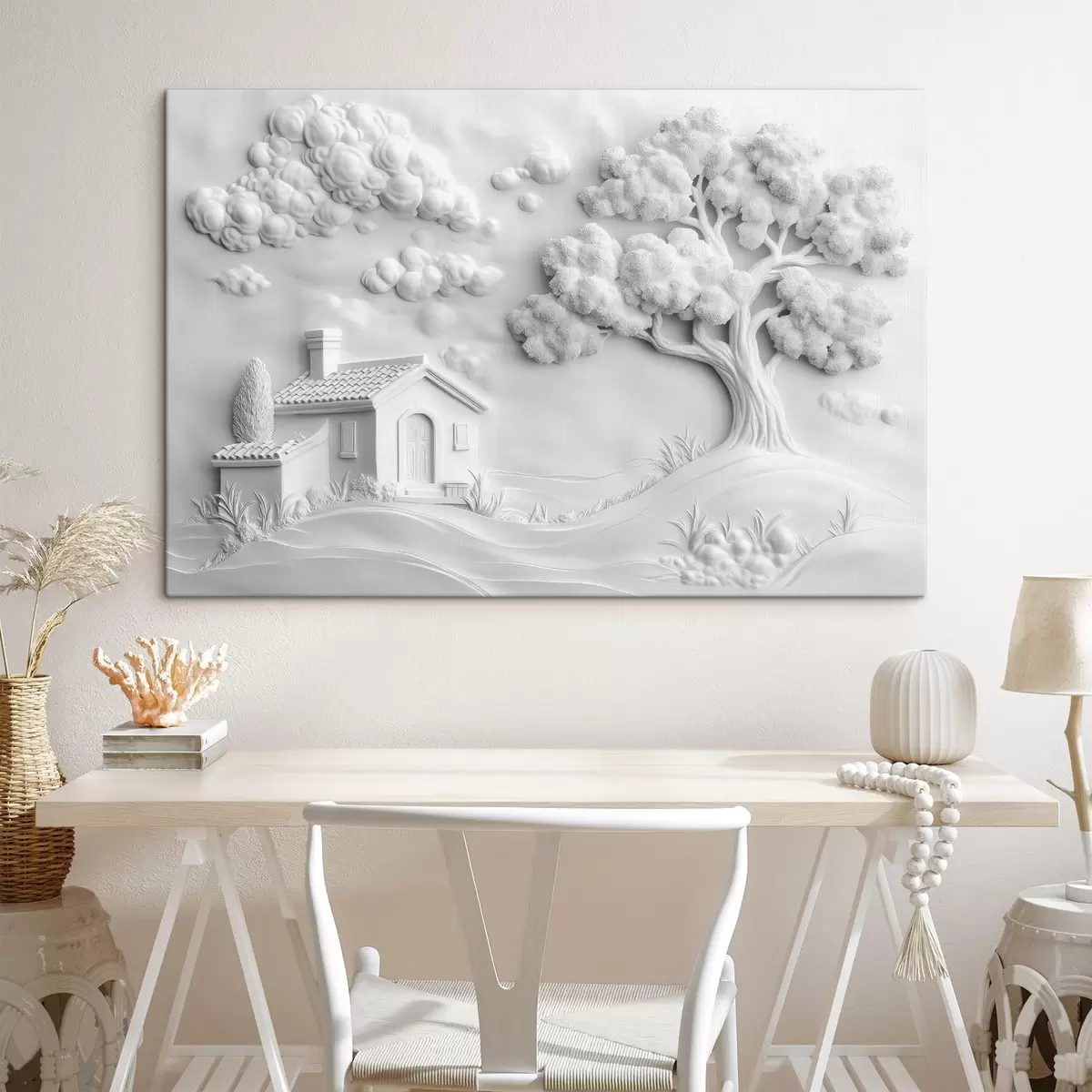 Quadri imitazione 3D di stucco di una casetta del villaggio Nr s41878