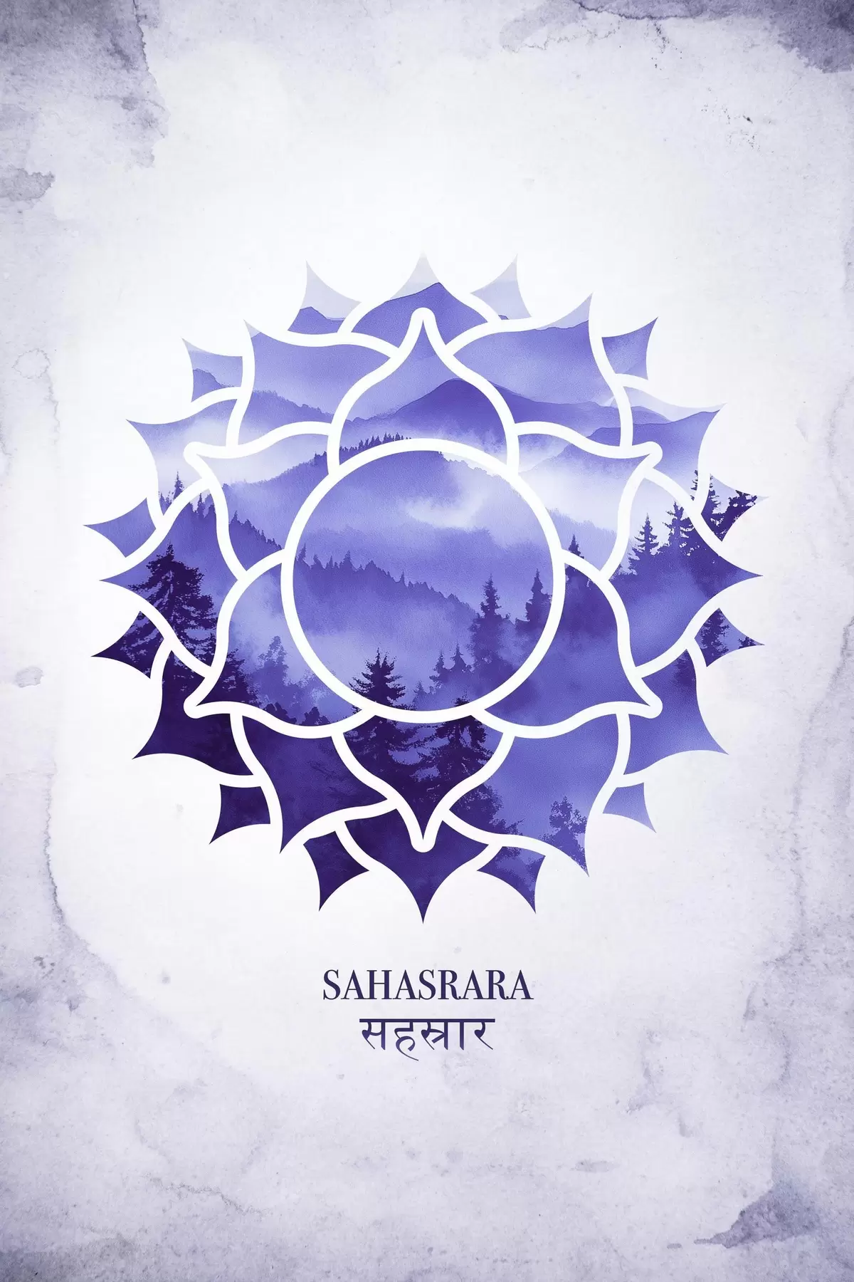 Quadri Sahasrara chakra, chakra viola, esoterico, meditazione, buddismo, montagne in stile acquerello Nr s41886