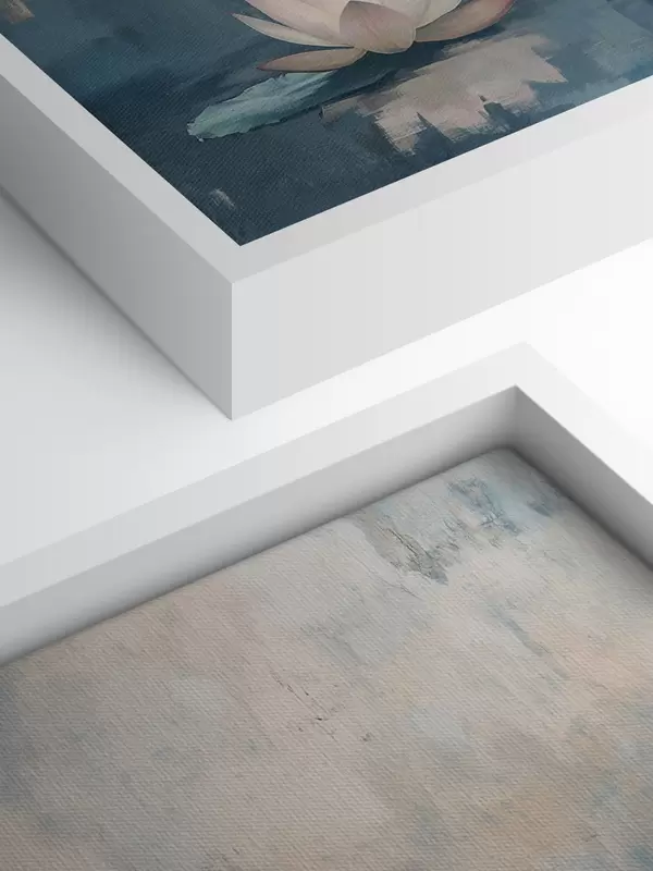 Quadri Buddha in meditazione nel lago con fiori di loto, stile orientale, acrilico Nr s41891